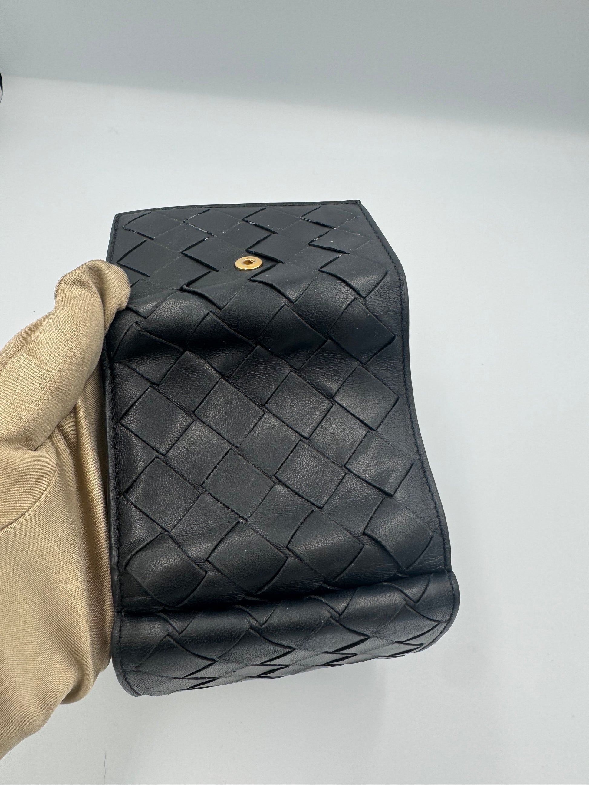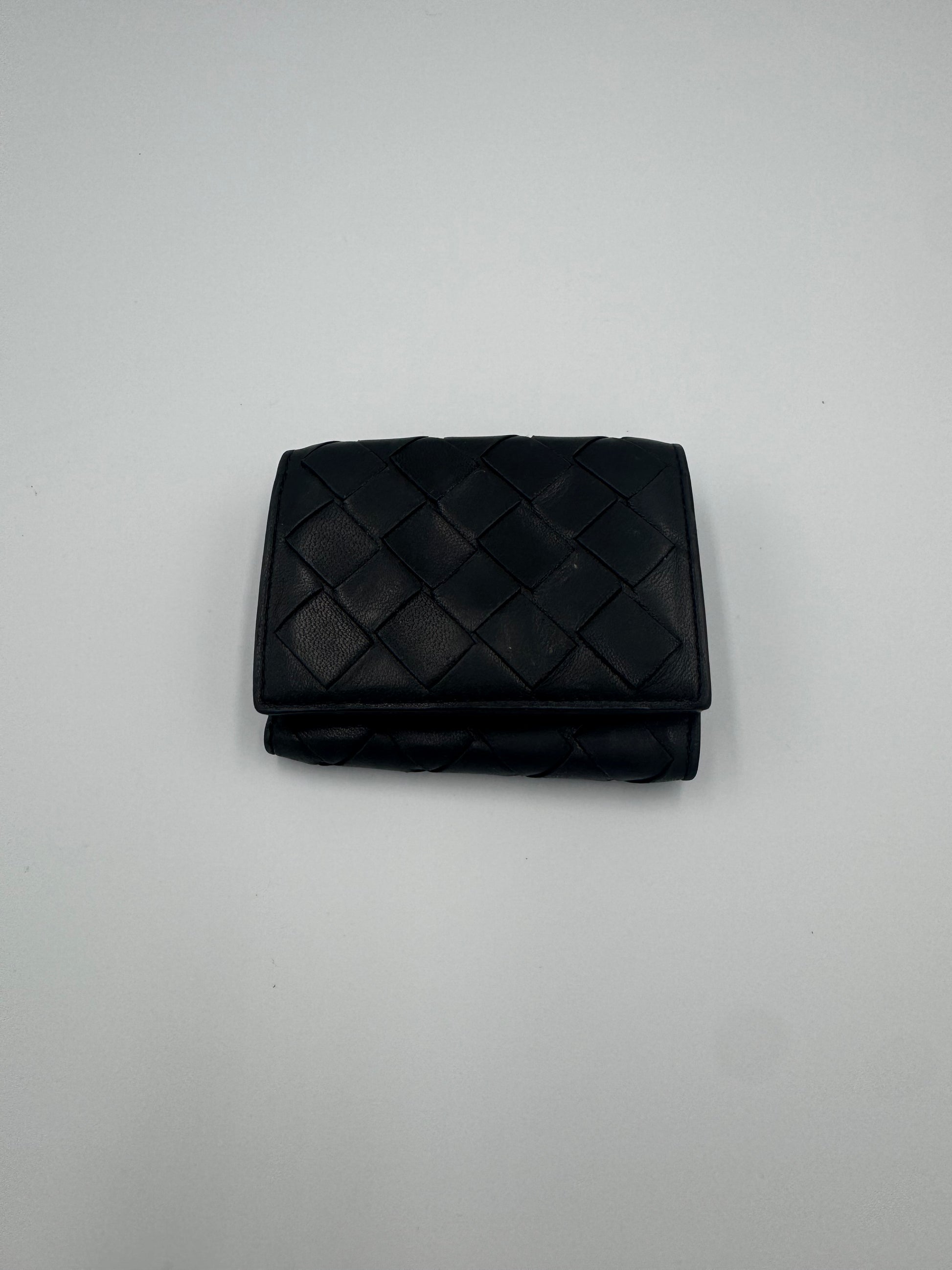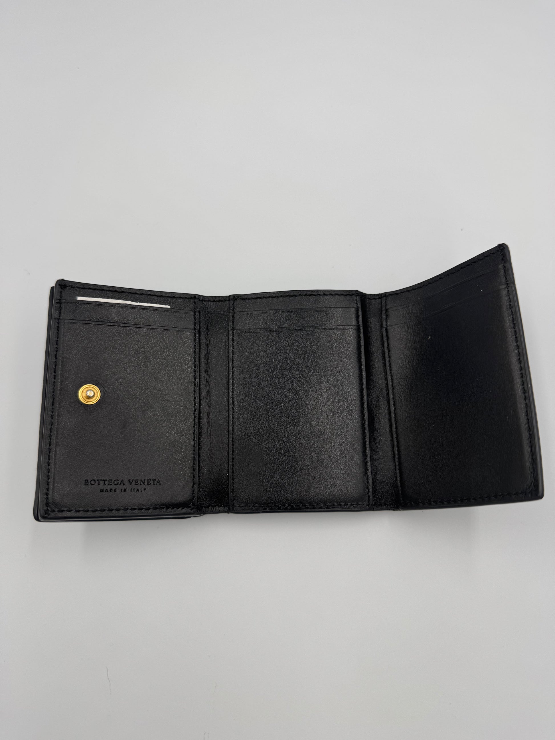 Pre-owned Bottega Veneta Trifold Black Lambskin Wallet