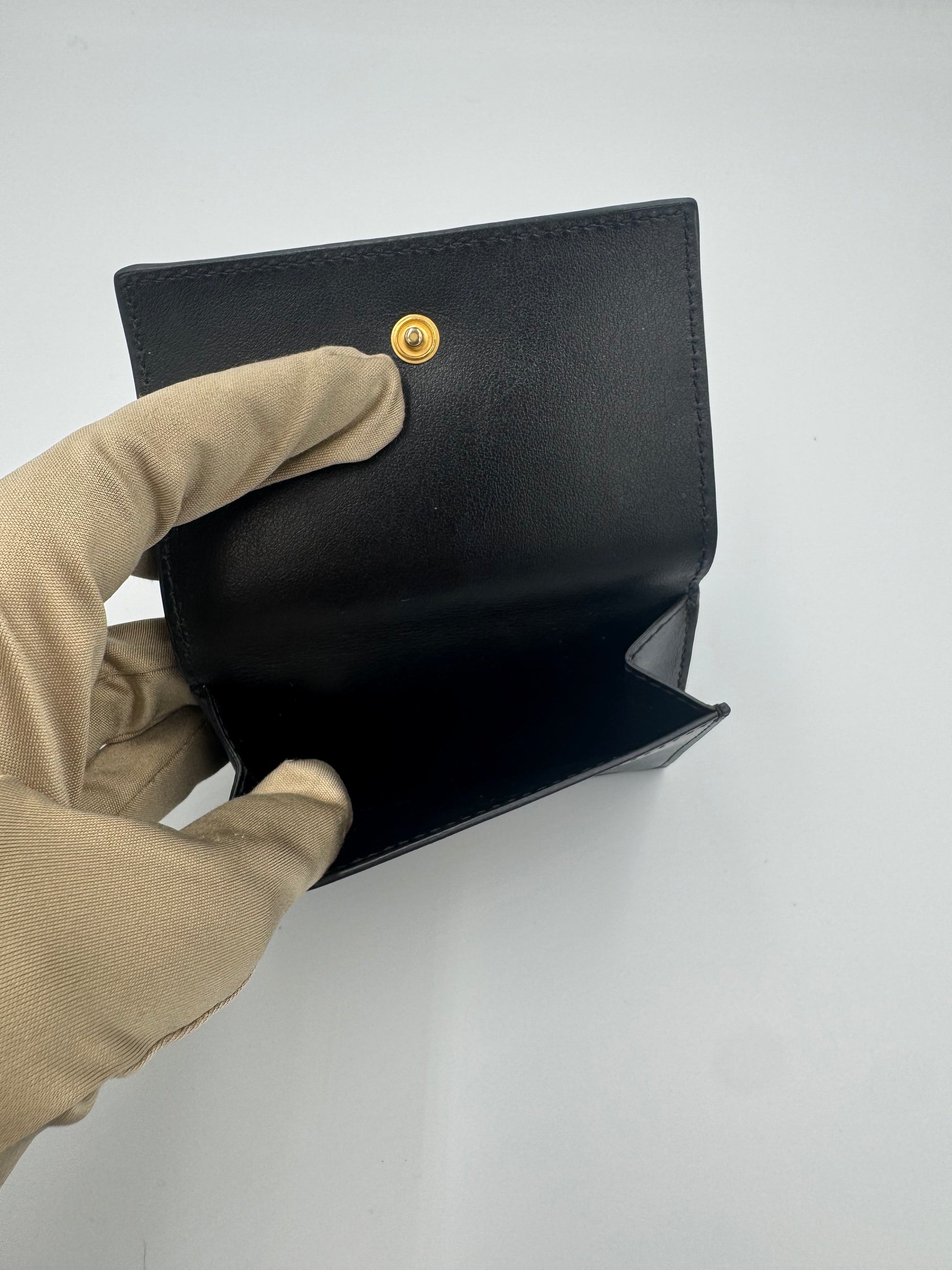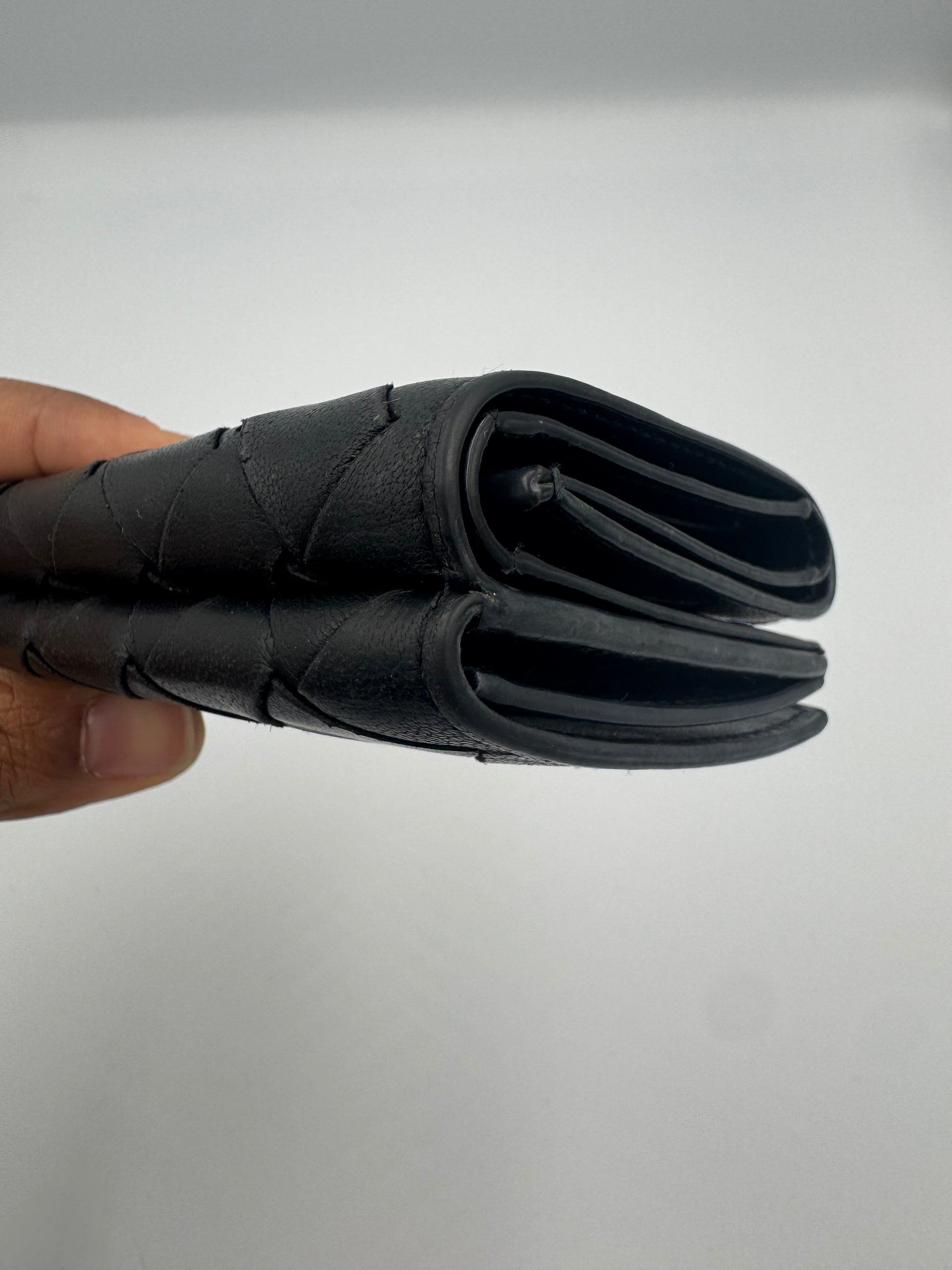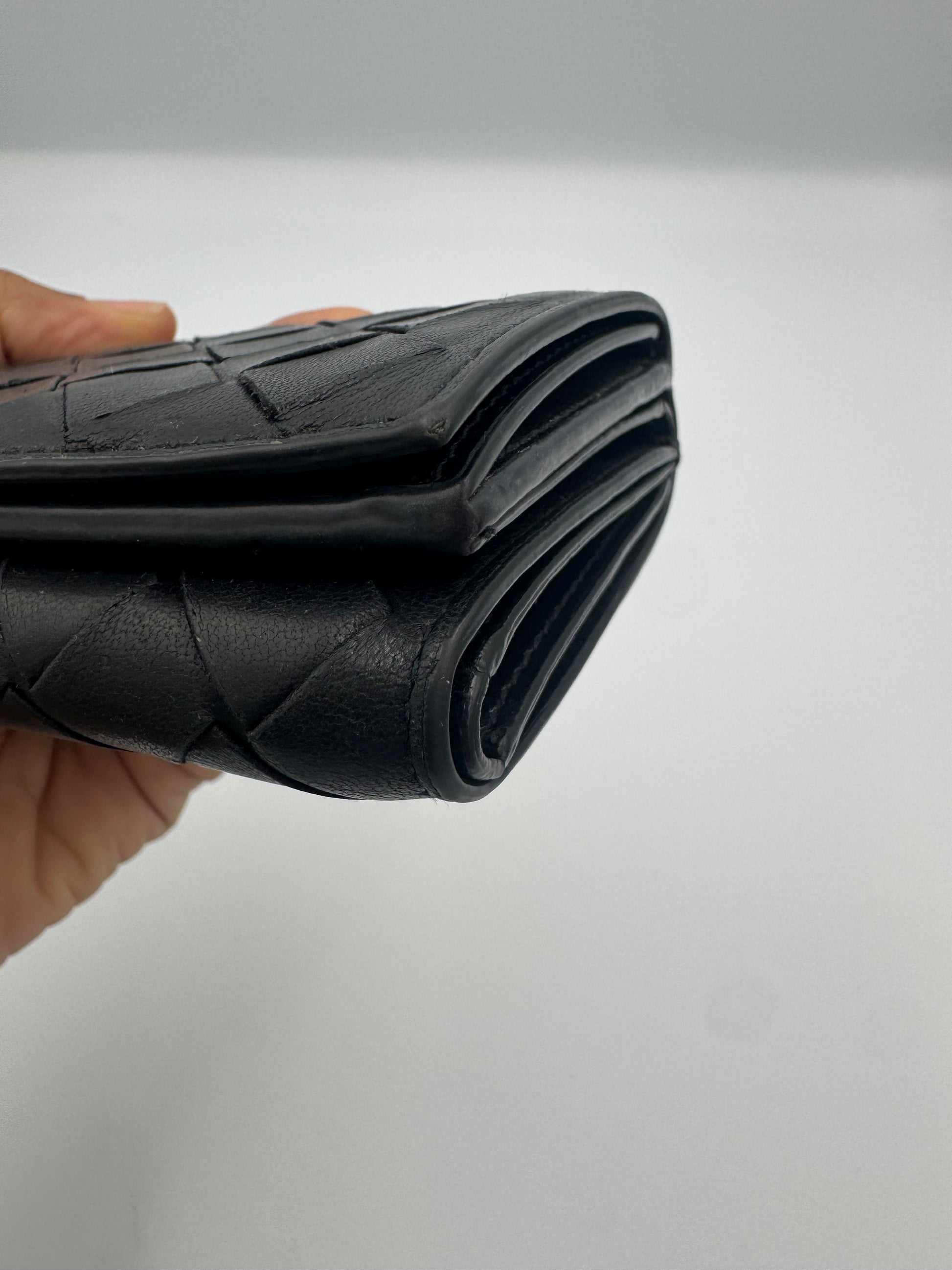Pre-owned Bottega Veneta Trifold Black Lambskin Wallet