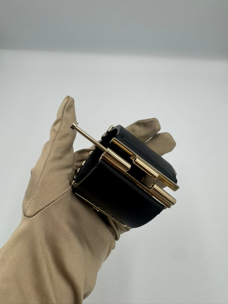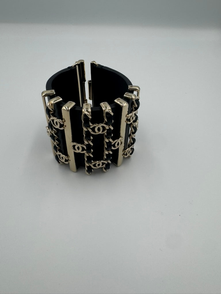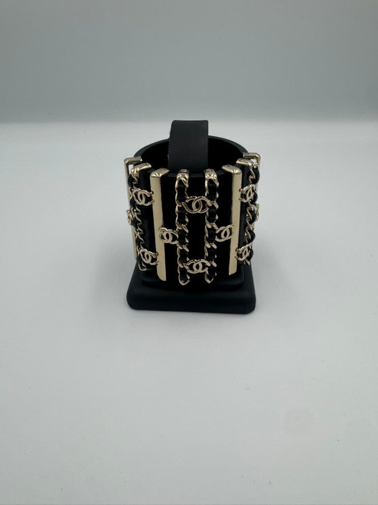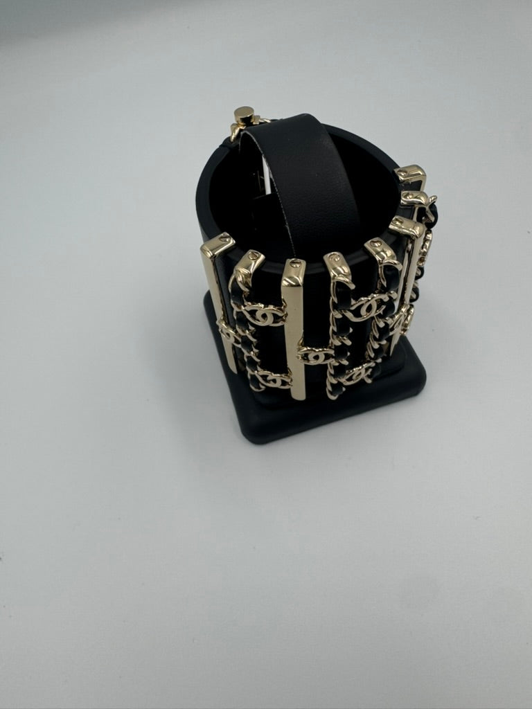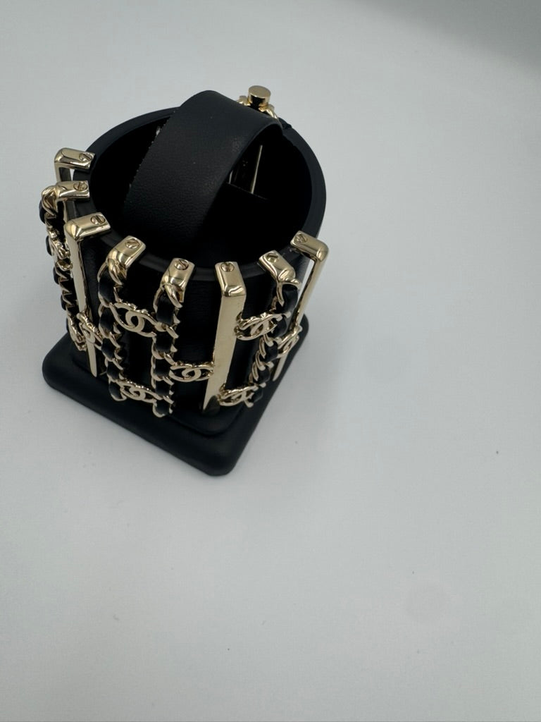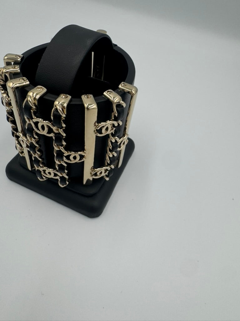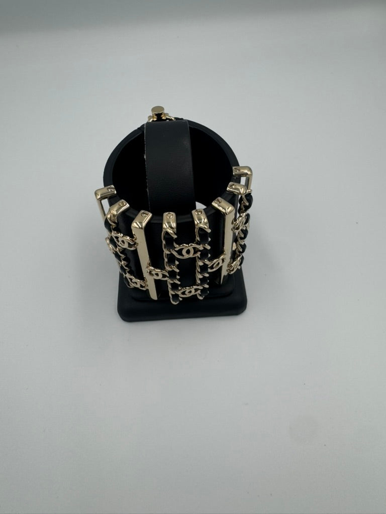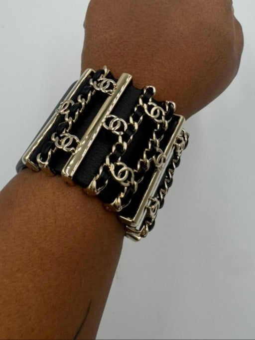 Pre-owned Chanel Black Leather Cuff 2022 Collection Size XS with Box