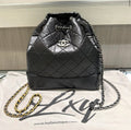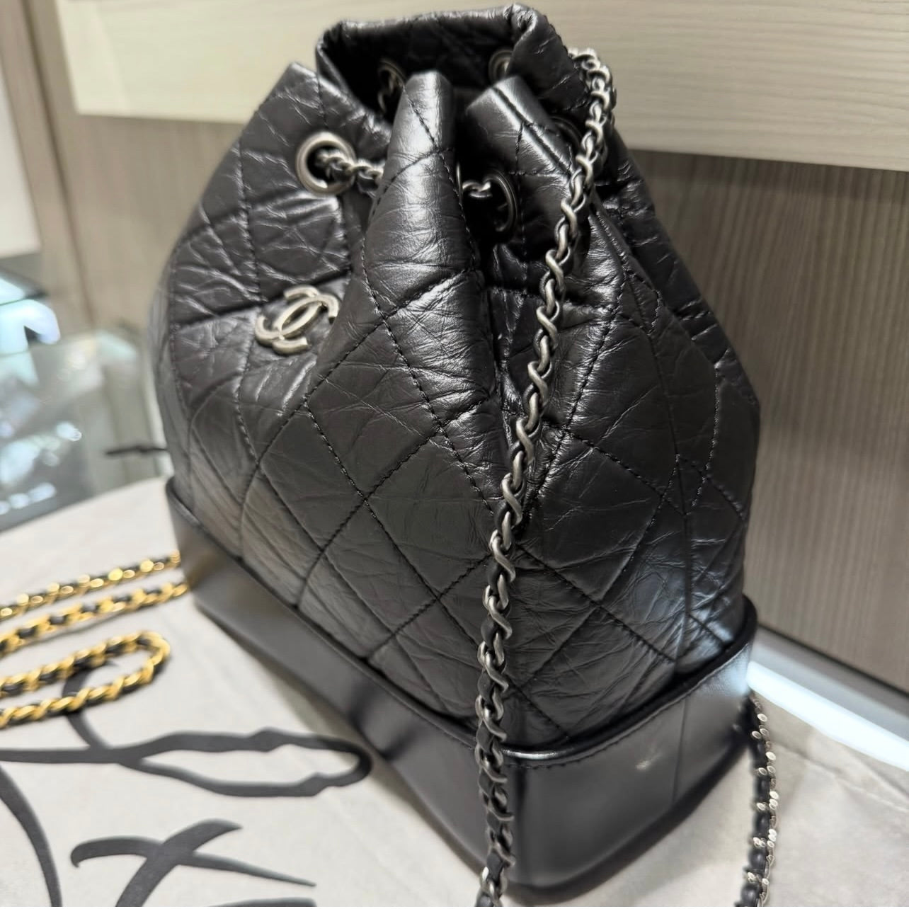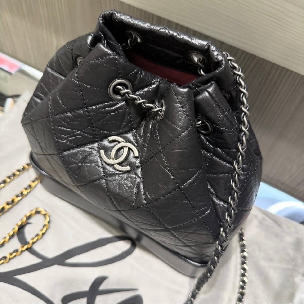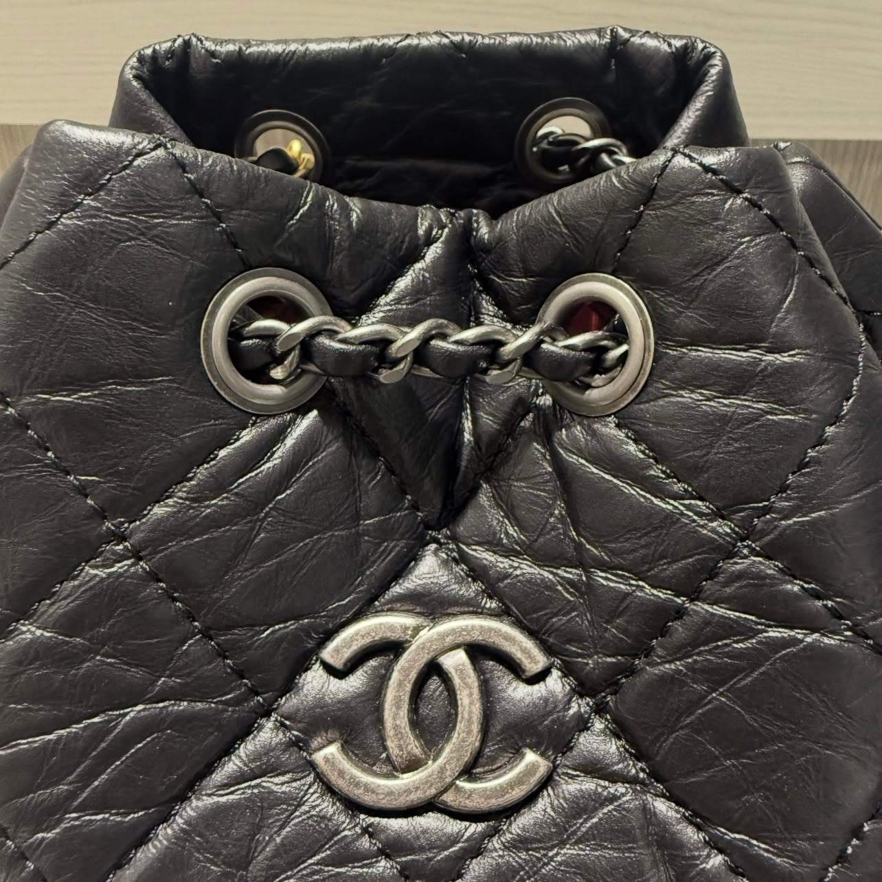 Pre-Owned Chanel Gabrielle Crinkled Calfskin Black Leather Backpack