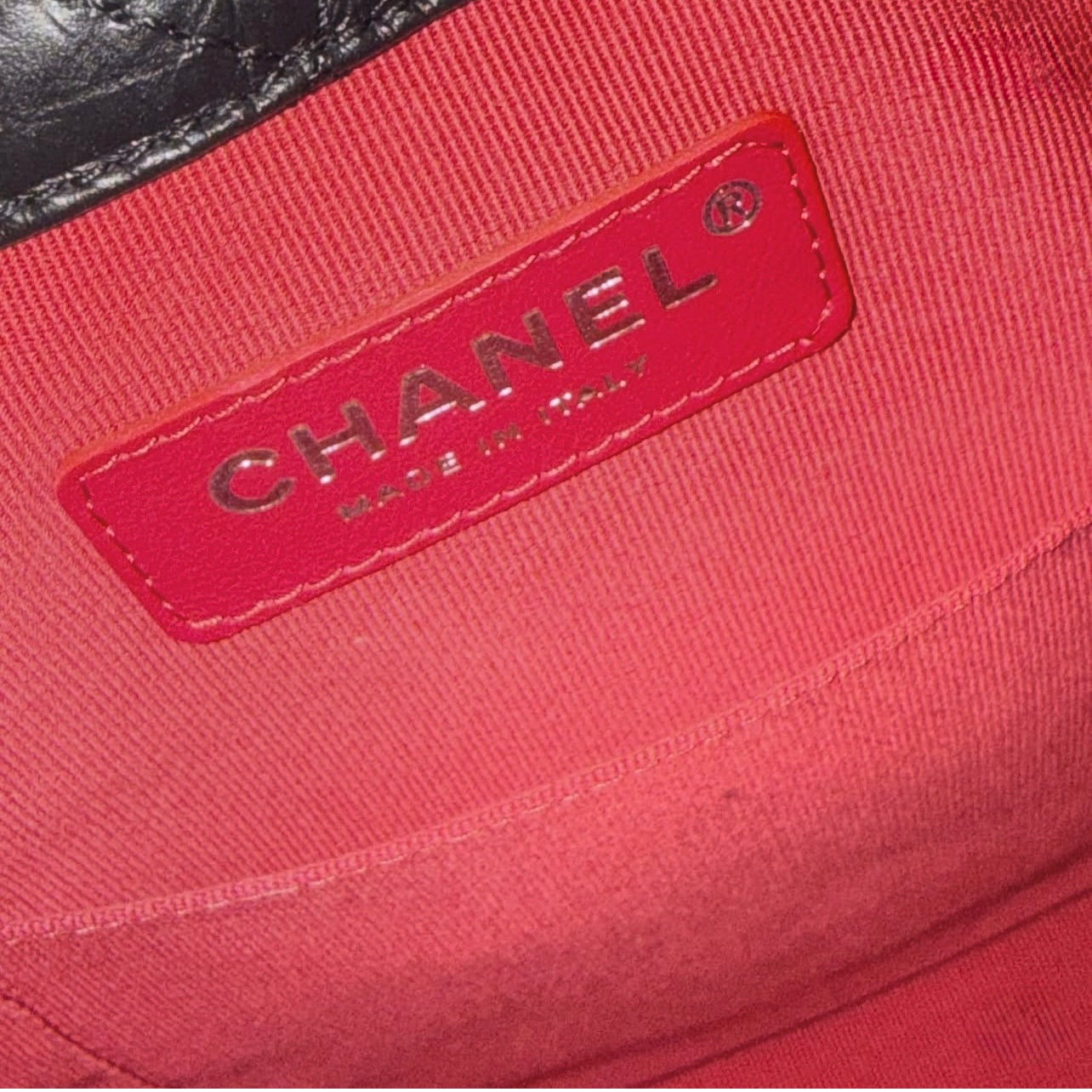 This stunning Chanel Gabrielle Backpack is crafted in aged calfskin leather with two-tone hardware and is a post-2021 microchip model. It features a vibrant bright red interior and is in mint, top condition inside and out.
