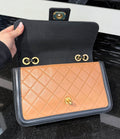 Pre-owned Chanel Elegant two tone tan black single flap medium (2016 Collection)