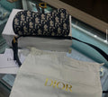 Pre-owned Christian Dior Saddle Belt Pouch Blue Dior Oblique Jacquard
