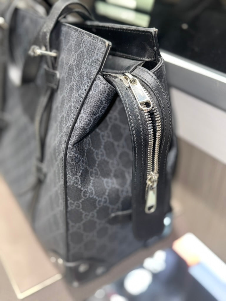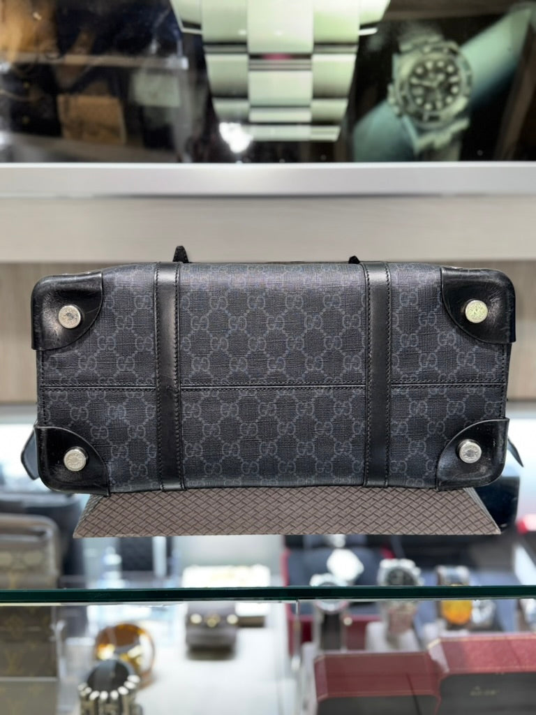 Pre-owned Gucci GG tote Bag with Leather details grey and black supreme Style: 626356