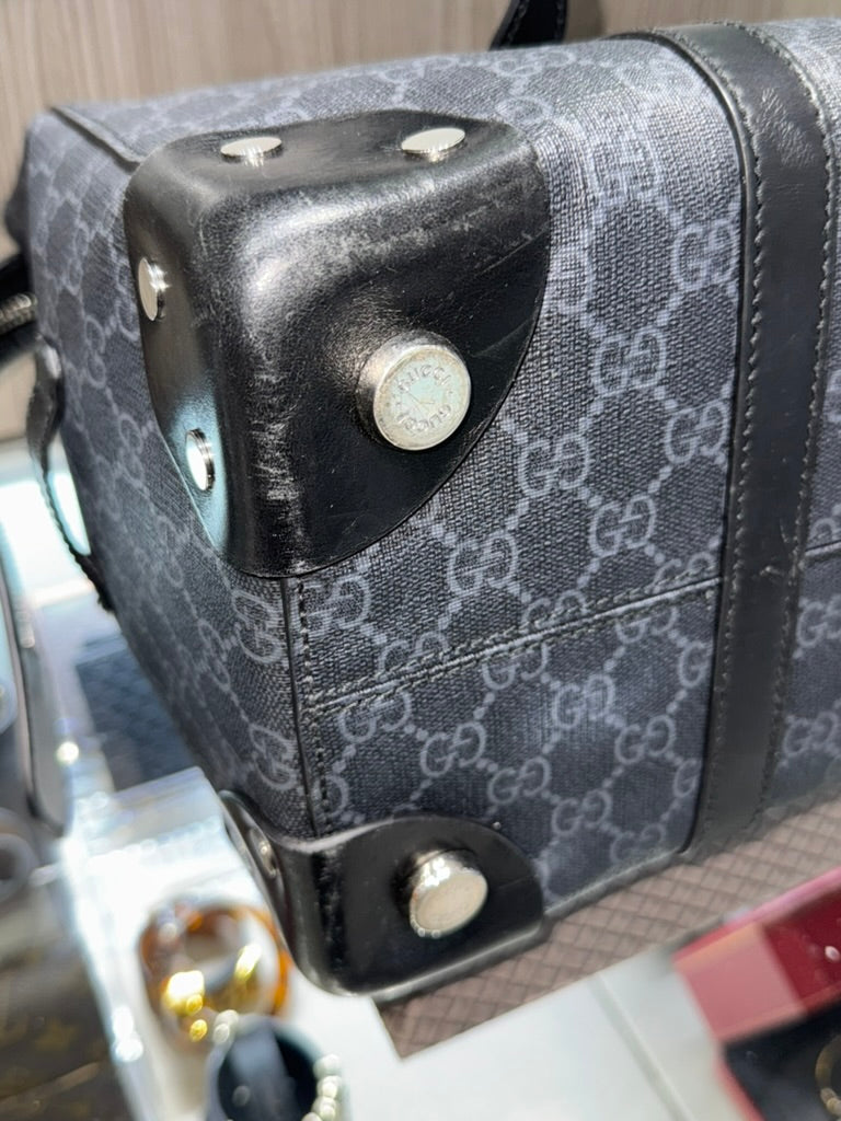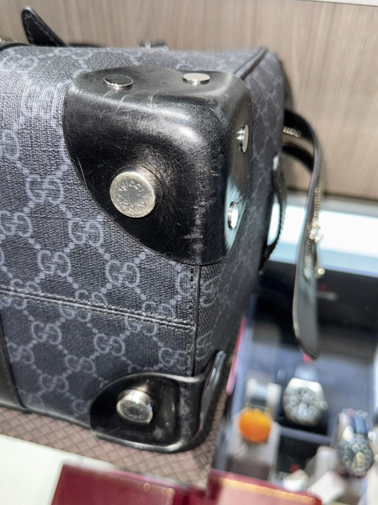 - Exterior: Grey and black GG Supreme coated canvas with black leather trim.