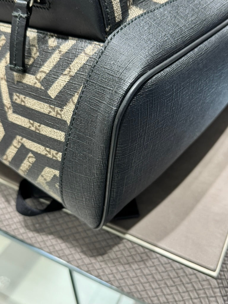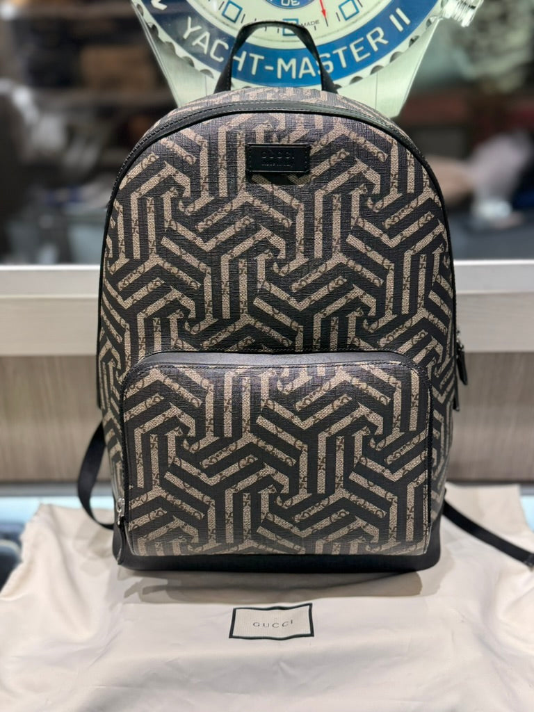This pre-owned Gucci GG Supreme Caleido Backpack blends functionality with luxury, making it the perfect companion for travel, school, or everyday use. Featuring the iconic Gucci GG monogram coated canvas in a bold black and gray Caleido pattern, this backpack offers a sleek, modern aesthetic.