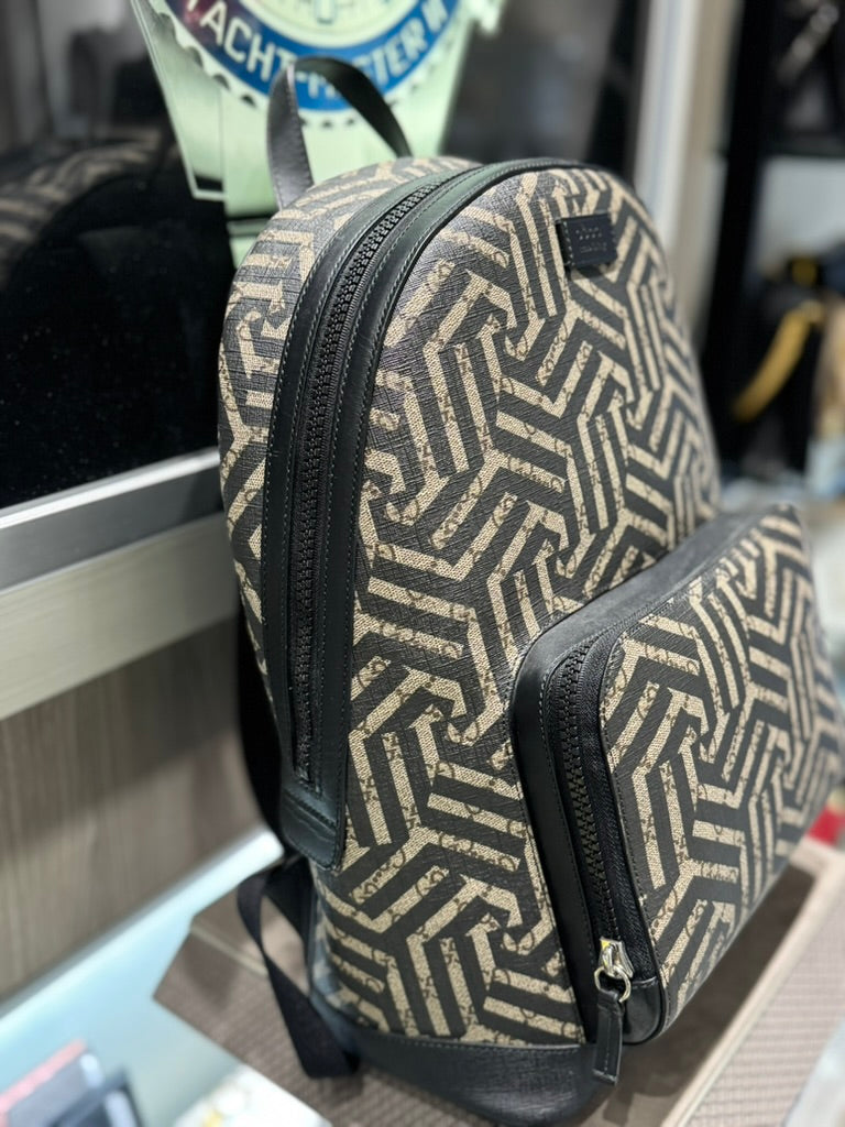 This Gucci Caleido Backpack combines timeless design and practicality, featuring a roomy interior perfect for carrying everything from laptops to daily essentials. Its lightweight build and ergonomic straps ensure comfortable use, while the distinctive monogram pattern adds a sophisticated touch to any outfit.