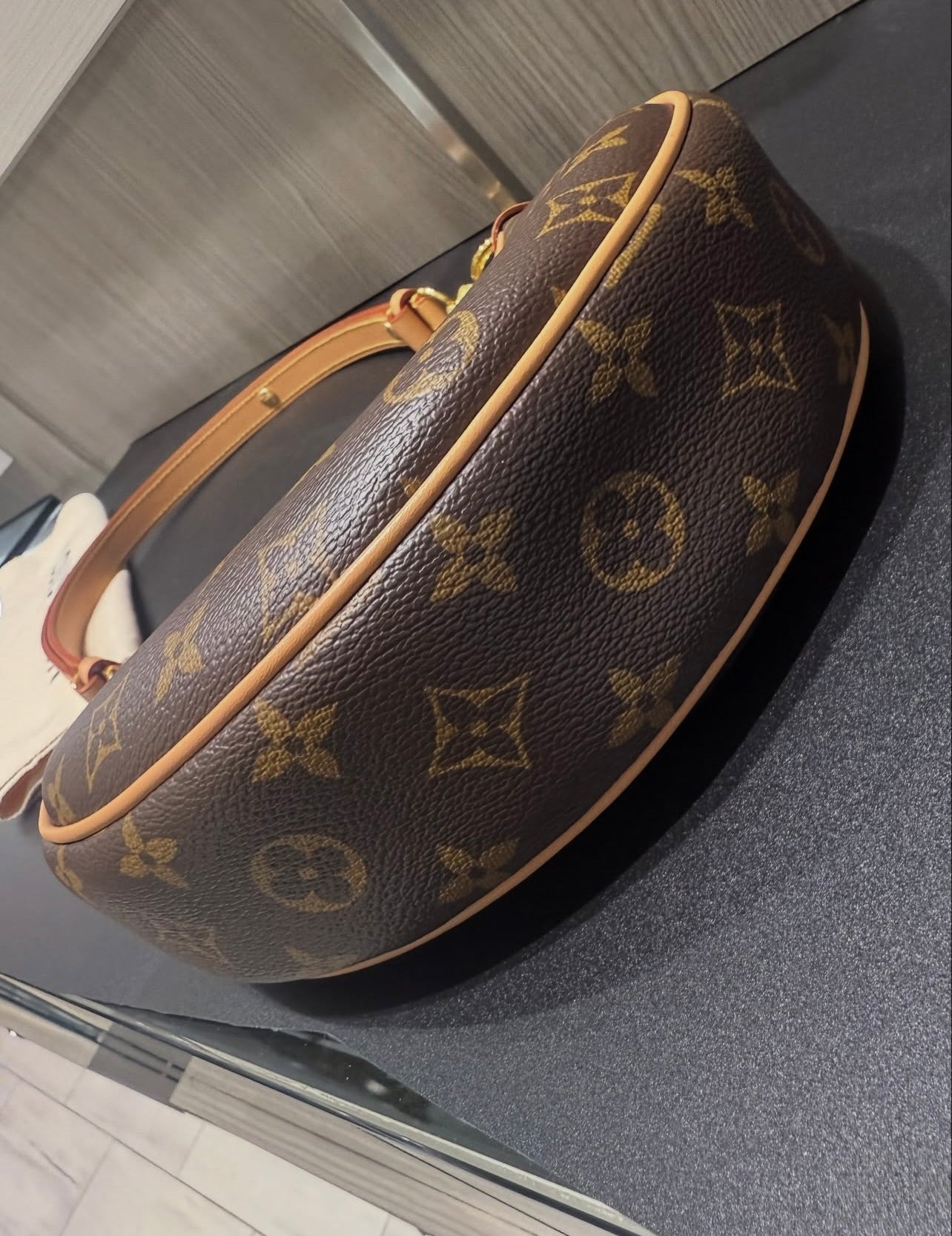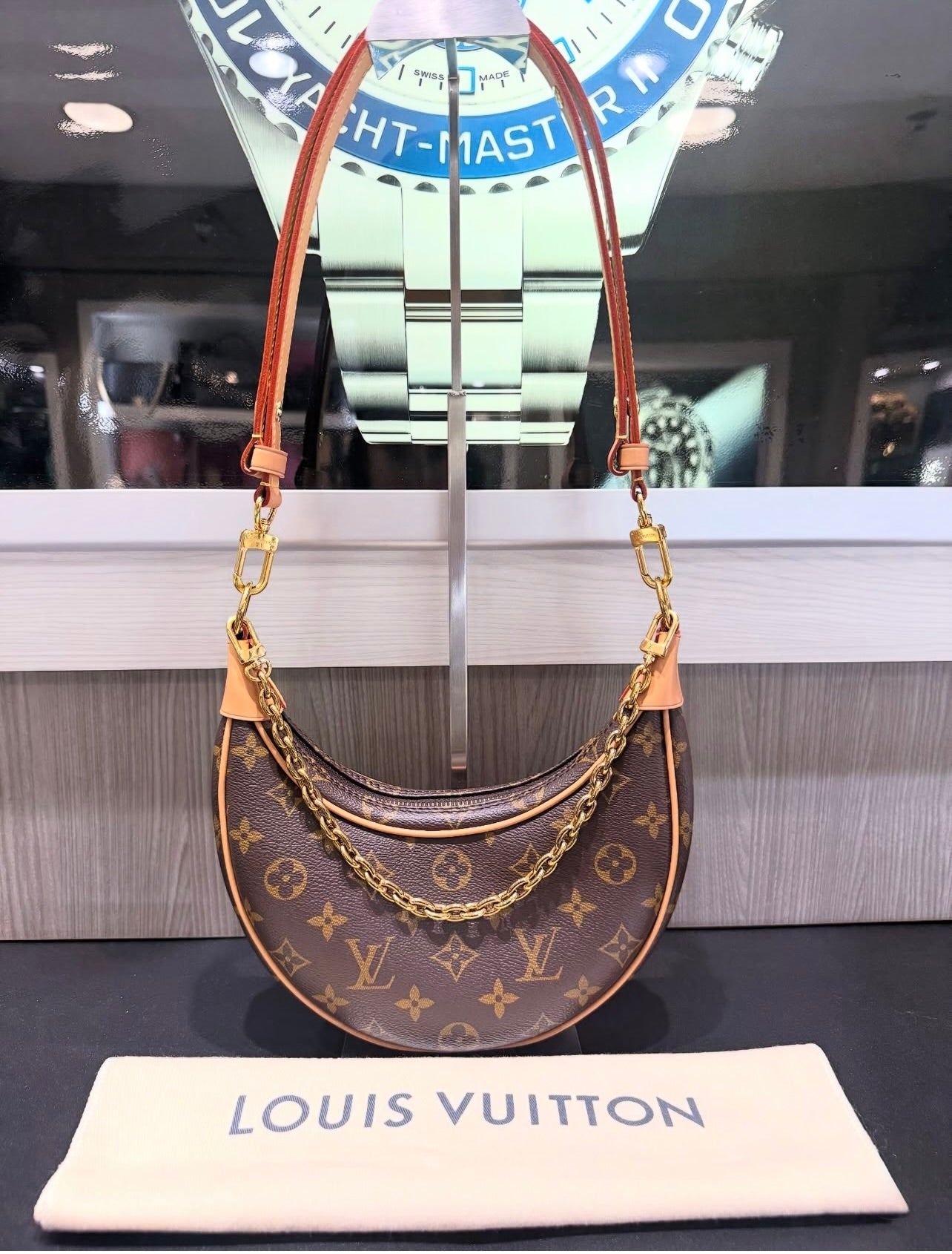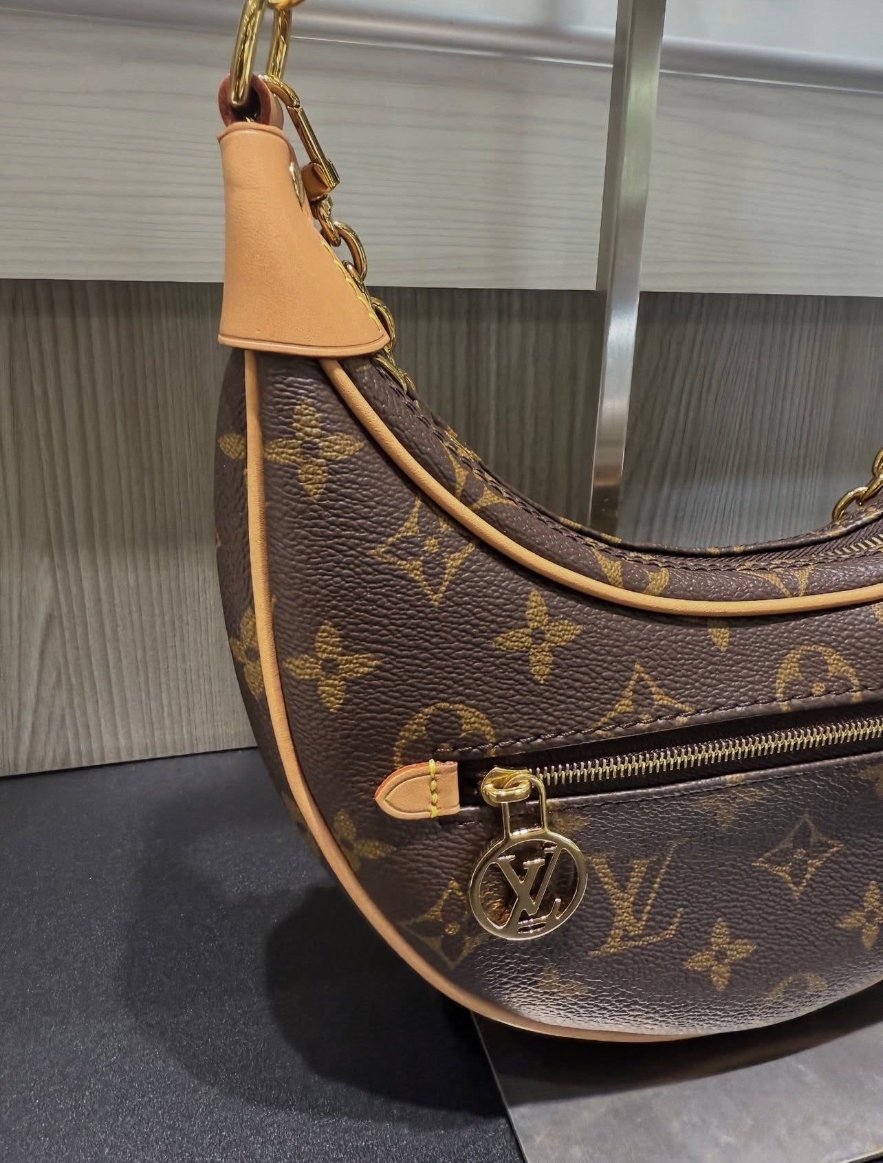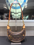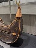 Elevate your everyday style with this pre-owned Louis Vuitton Loop Bag, presented in excellent condition with little to no signs of prior use. Inspired by the House’s archival Croissant bag, this chic half-moon silhouette combines heritage with modern versatility. Crafted from Monogram coated canvas with aged natural cowhide leather trim, the bag features gold-tone brass hardware and thoughtful design details.