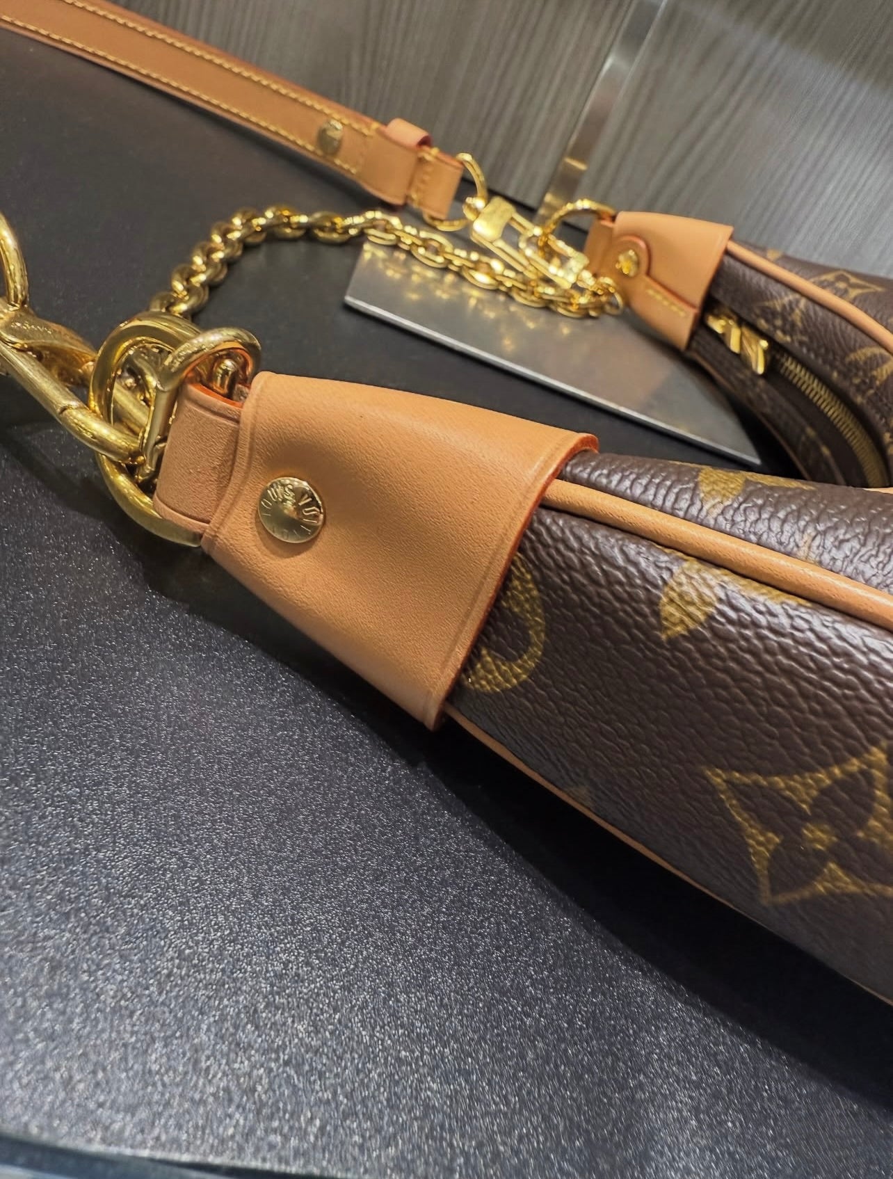 Two straps (leather crossbody + chain handle)