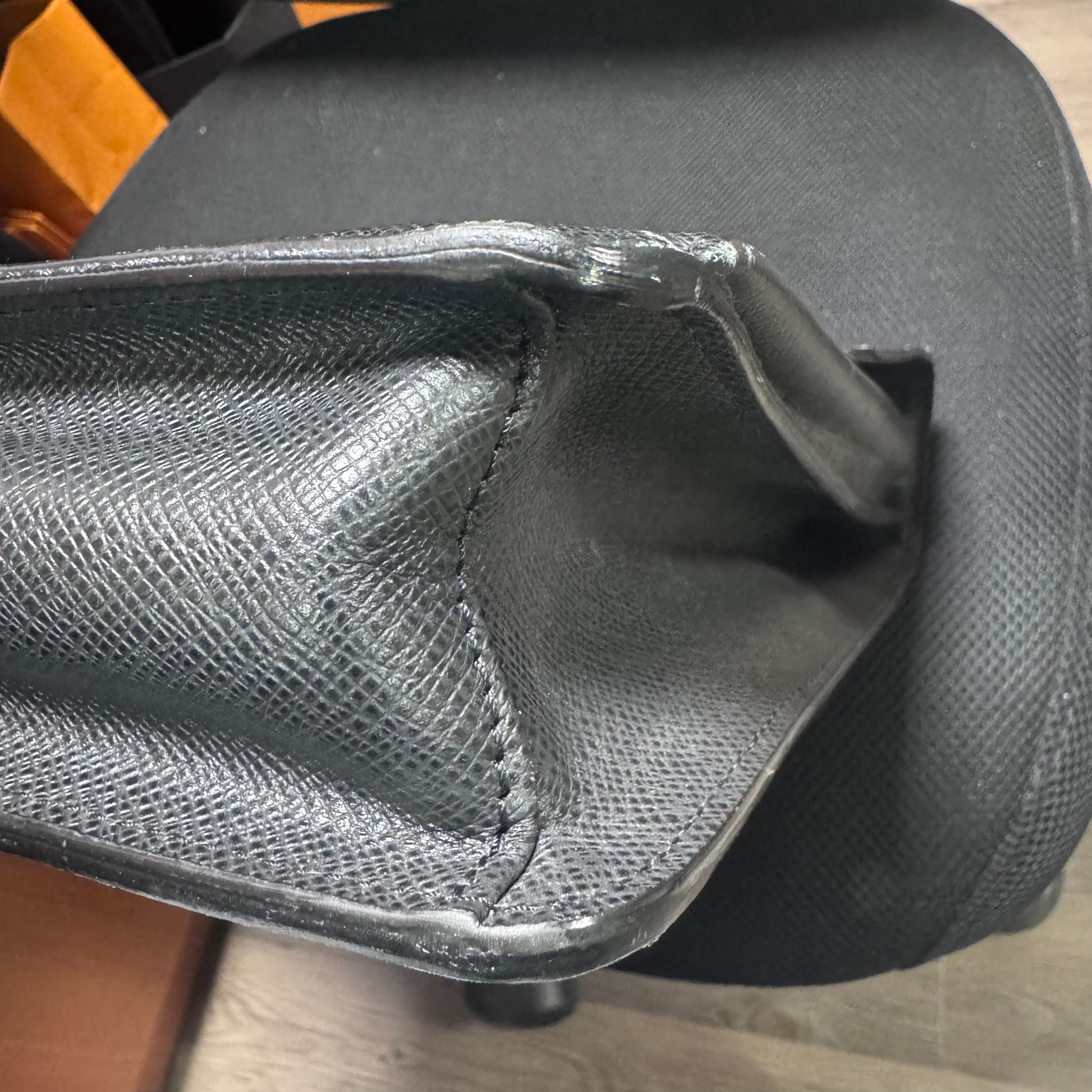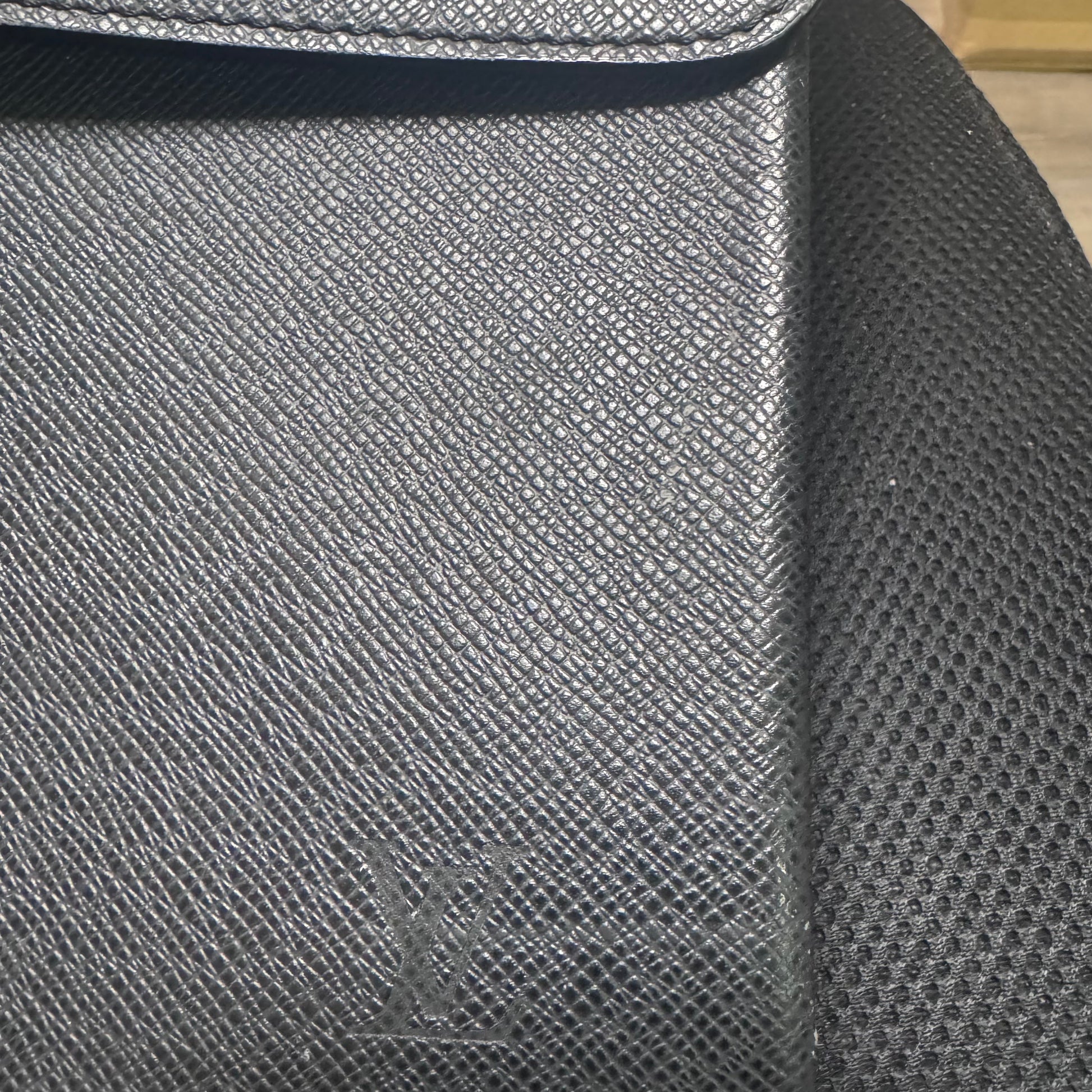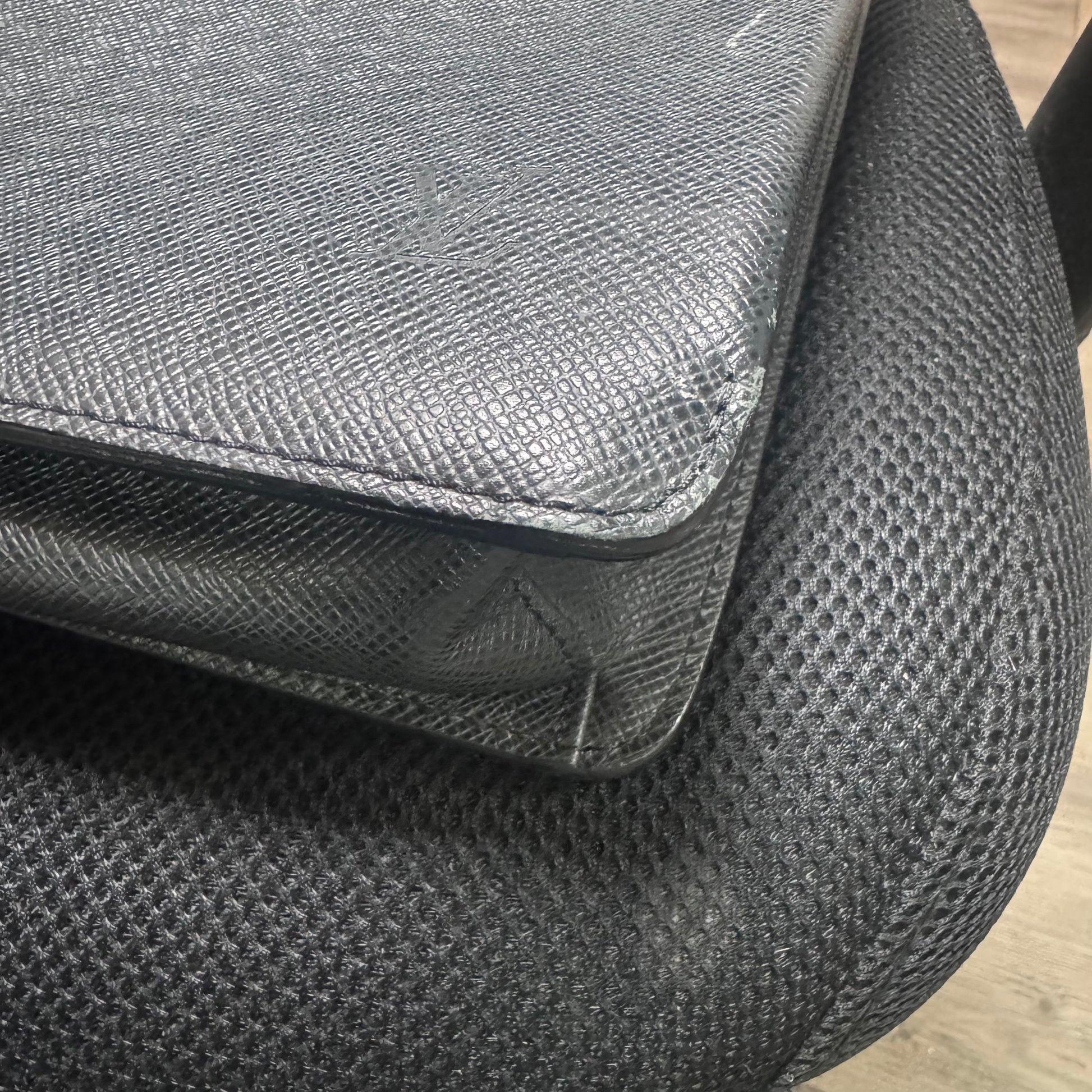 - Exterior: Durable Taiga leather with some visible scratches on the fabric and hardware.