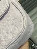 This authentic Louis Vuitton Ivy Wallet on Chain reimagines a beloved early-2000s silhouette, the Sac Recoleta, with a modern and feminine twist. Crafted from supple Monogram Empreinte grained cowhide leather in the soft and elegant Misty hue, this versatile piece combines timeless sophistication with everyday functionality.