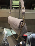 Adorned with light gold-toned hardware and featuring both a removable leather strap and chain, it effortlessly transitions from a chic crossbody by day to an elegant clutch by night. The interior reveals a thoughtfully designed layout with three card slots, a zipped pocket, and a flat compartment, ideal for organizing your daily essentials.