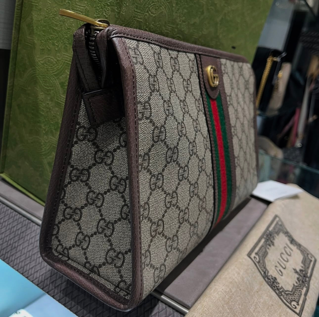 This Gucci Ophidia Pouch Clutch combines timeless style with modern functionality, perfect for both casual and formal occasions. With its pristine condition and classic design, it's an ideal addition to any luxury collection.