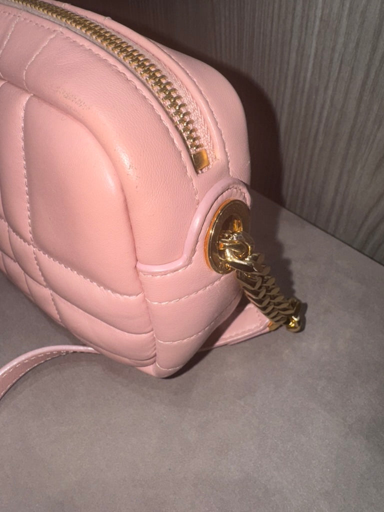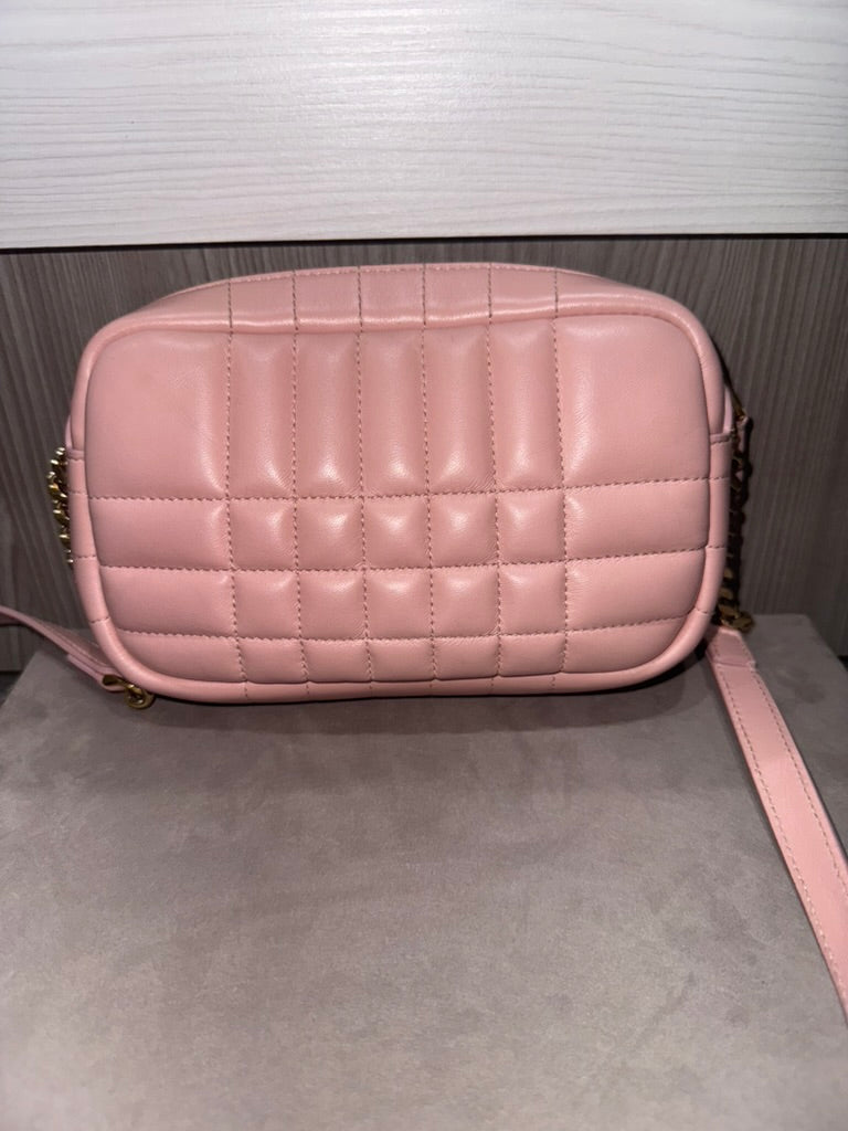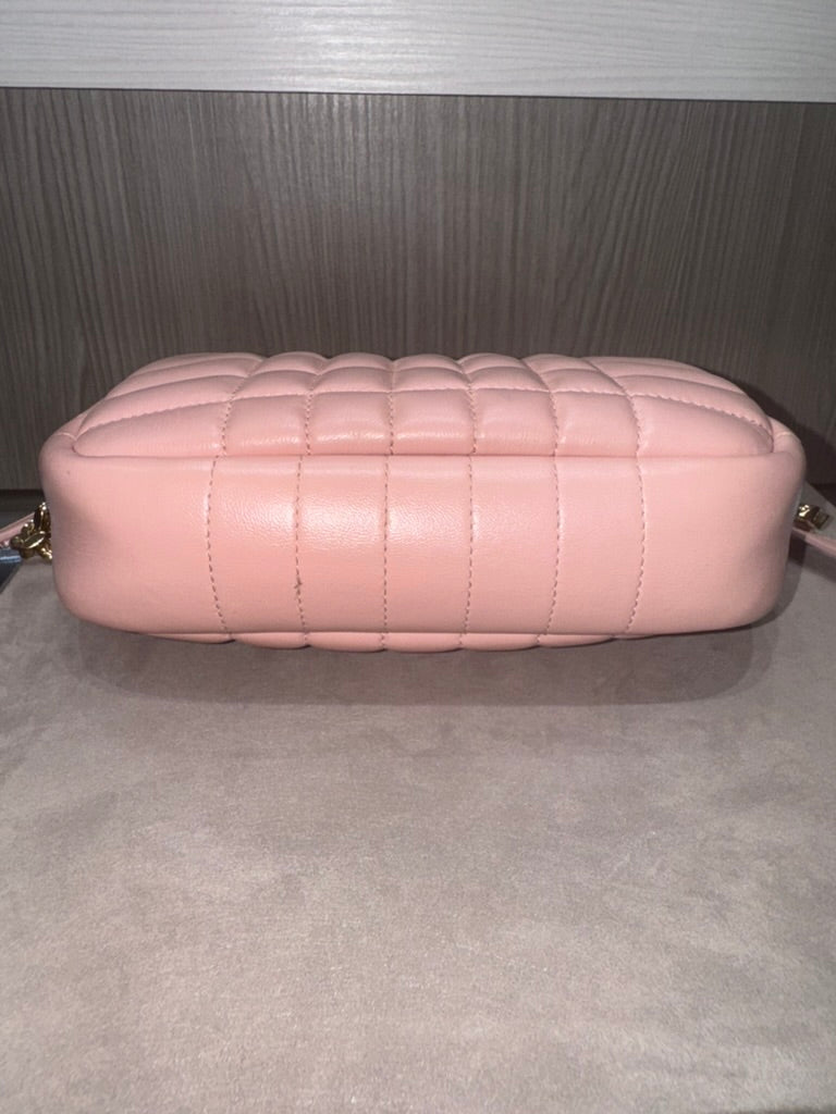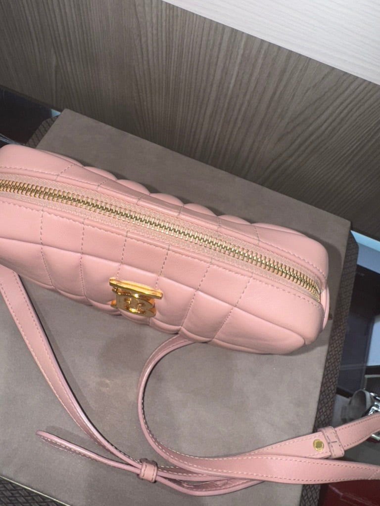 Pre-owned Burberry Mini Lola Quilted Camera Pale Pink Lambskin Crossbody