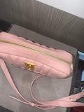 - Material:Exterior: Soft, quilted lambskin in a delicate pale pink hue.Trim: Coordinated lambskin detailing.