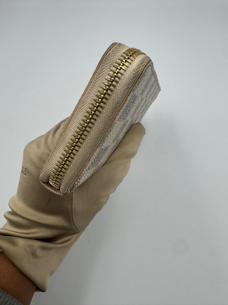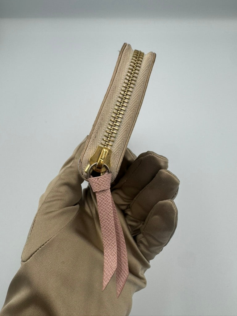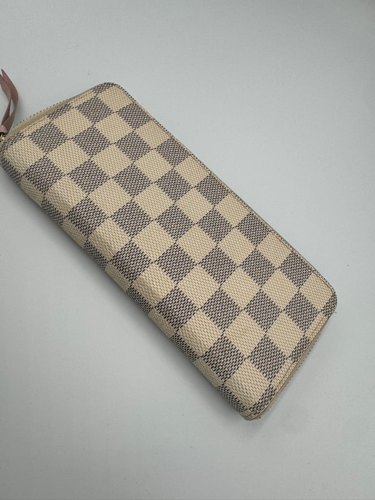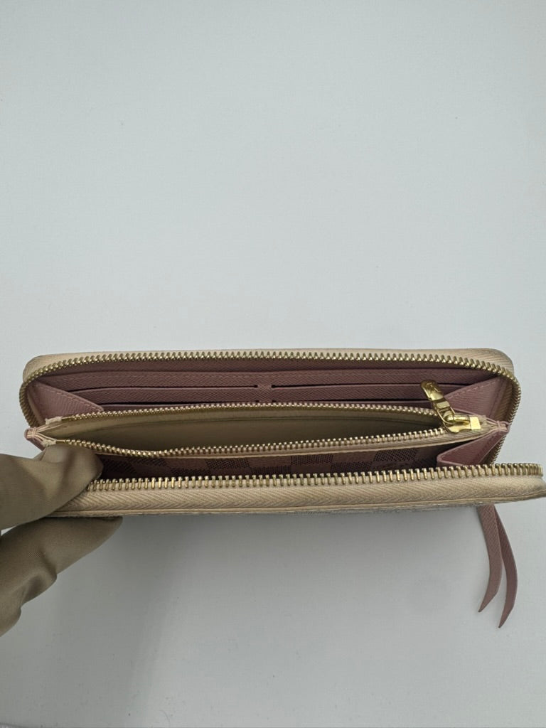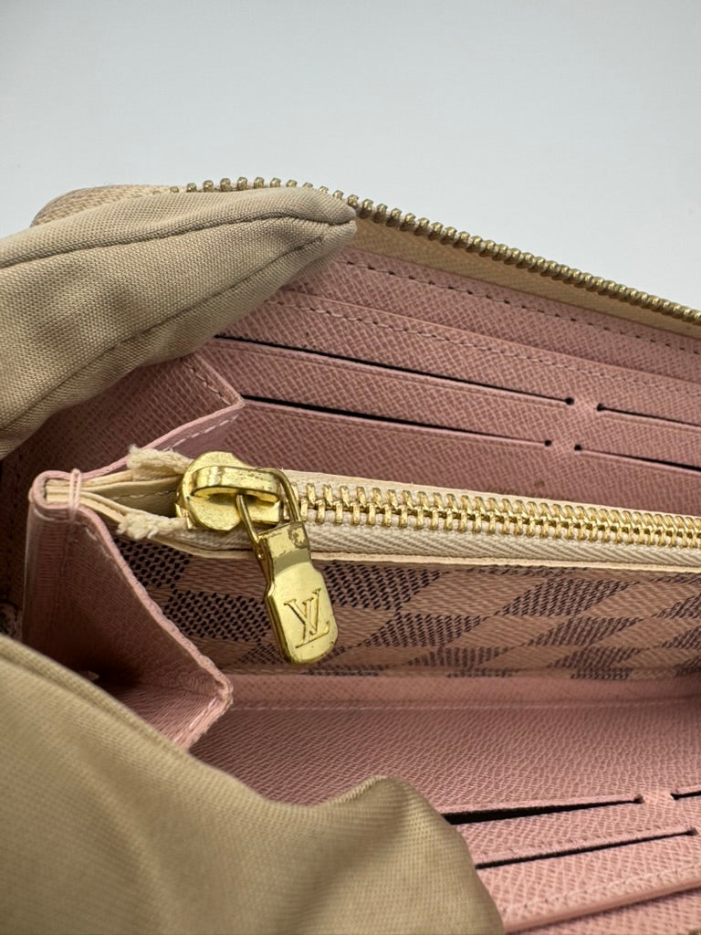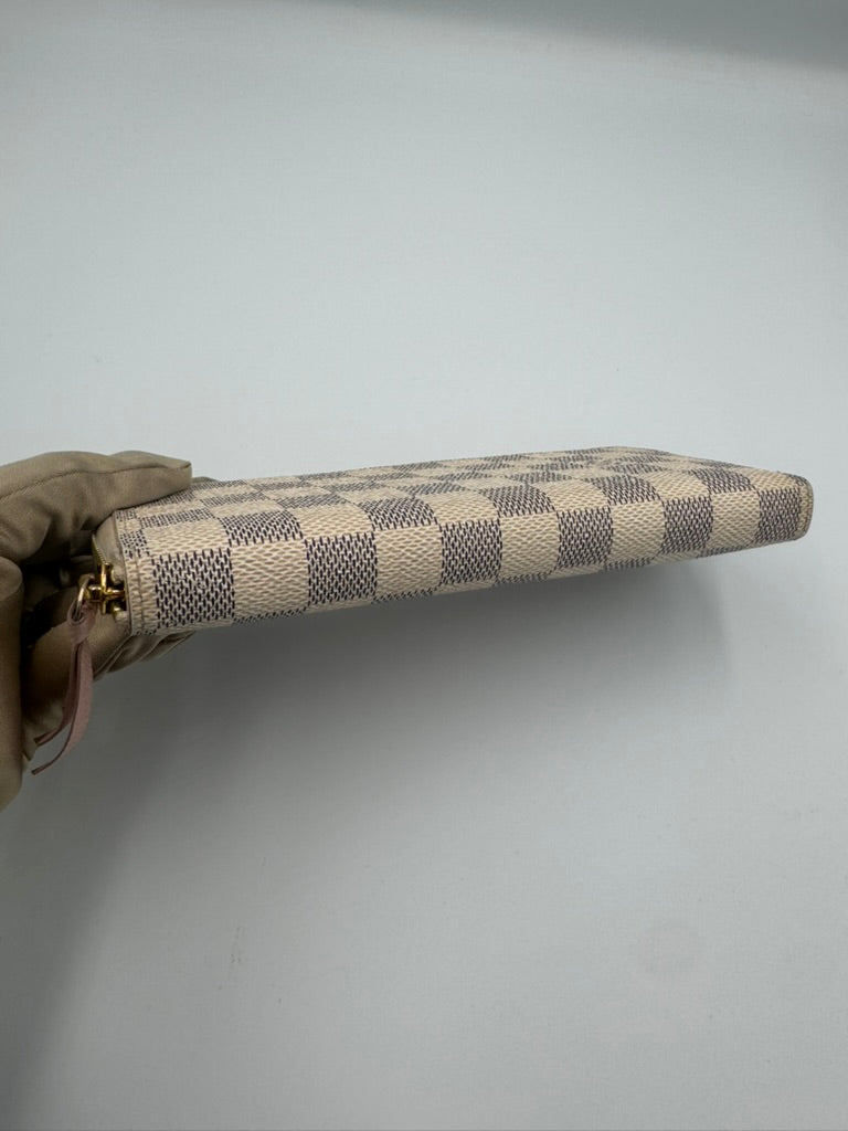 Pre-owned Clemence Wallet Damier Azur Microchip rose ballerine interior
