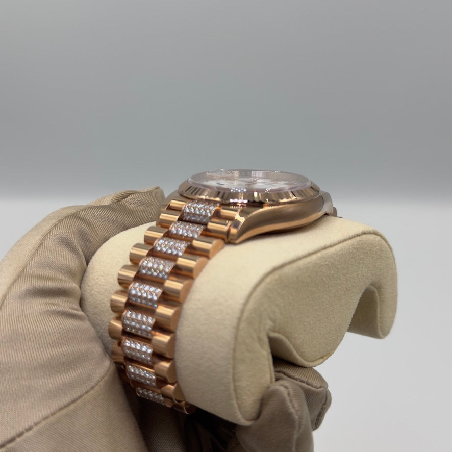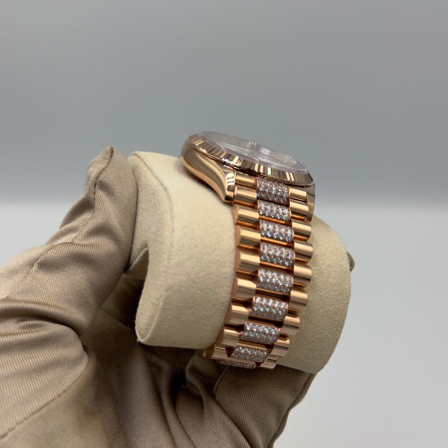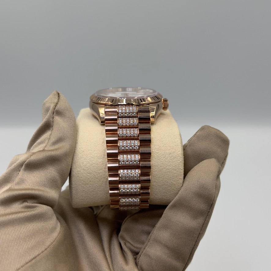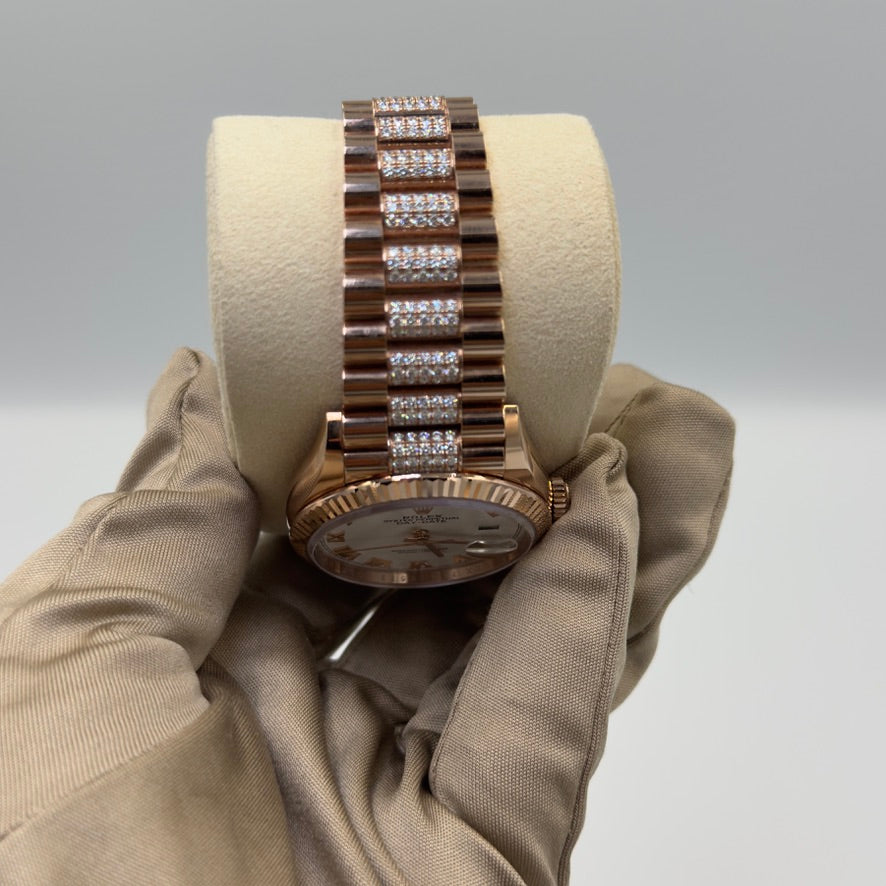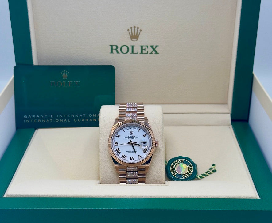 Unworn Rolex Oyster Perpetual Day-Date 36mm ref.128235 White Roman Dial on Diamond set President bracelet