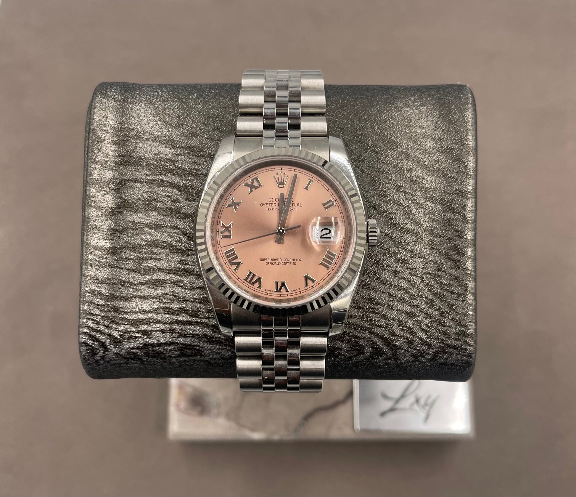 Pre-owned Rolex Men's Datejust 36mm ref. 116234 Salmon Roman Dial Fluted Bezel on Jubilee Z serial w/Box