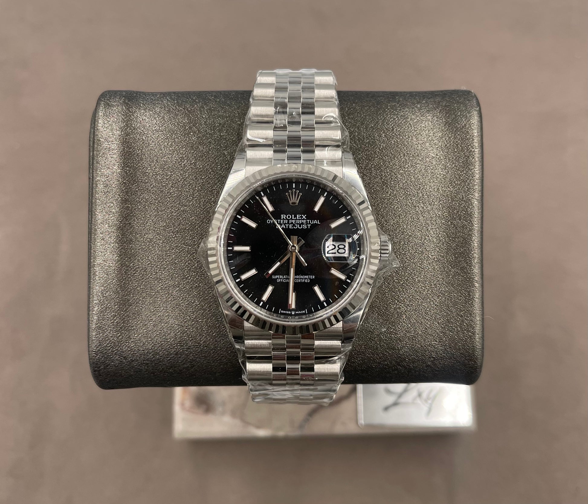 Unworn Rolex Men's Datejust 41mm ref.126234 Black Index Dial Fluted Bezel on Jubilee w/Box & Card