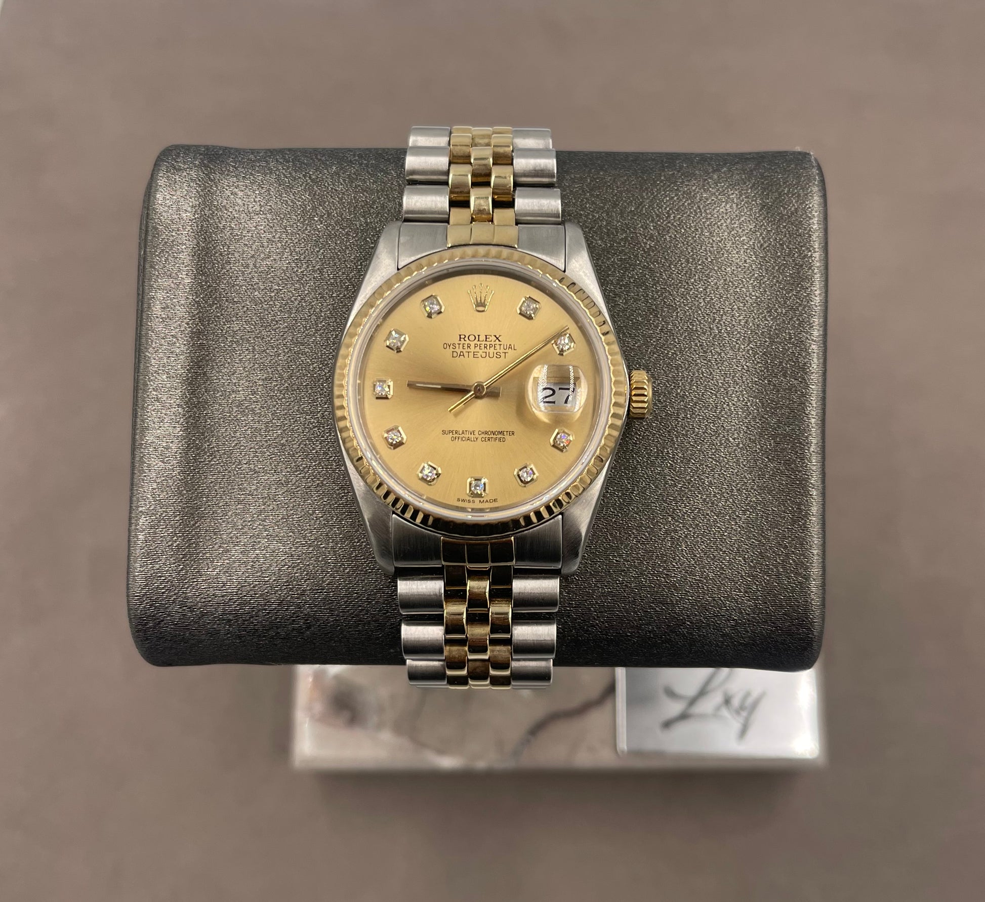 Pre-owned Rolex Men's Datejust 36mm ref.16013 Factory Champagne Diamond Dial Fluted Bezel on Jubilee 6 Mill Serial w/Box
