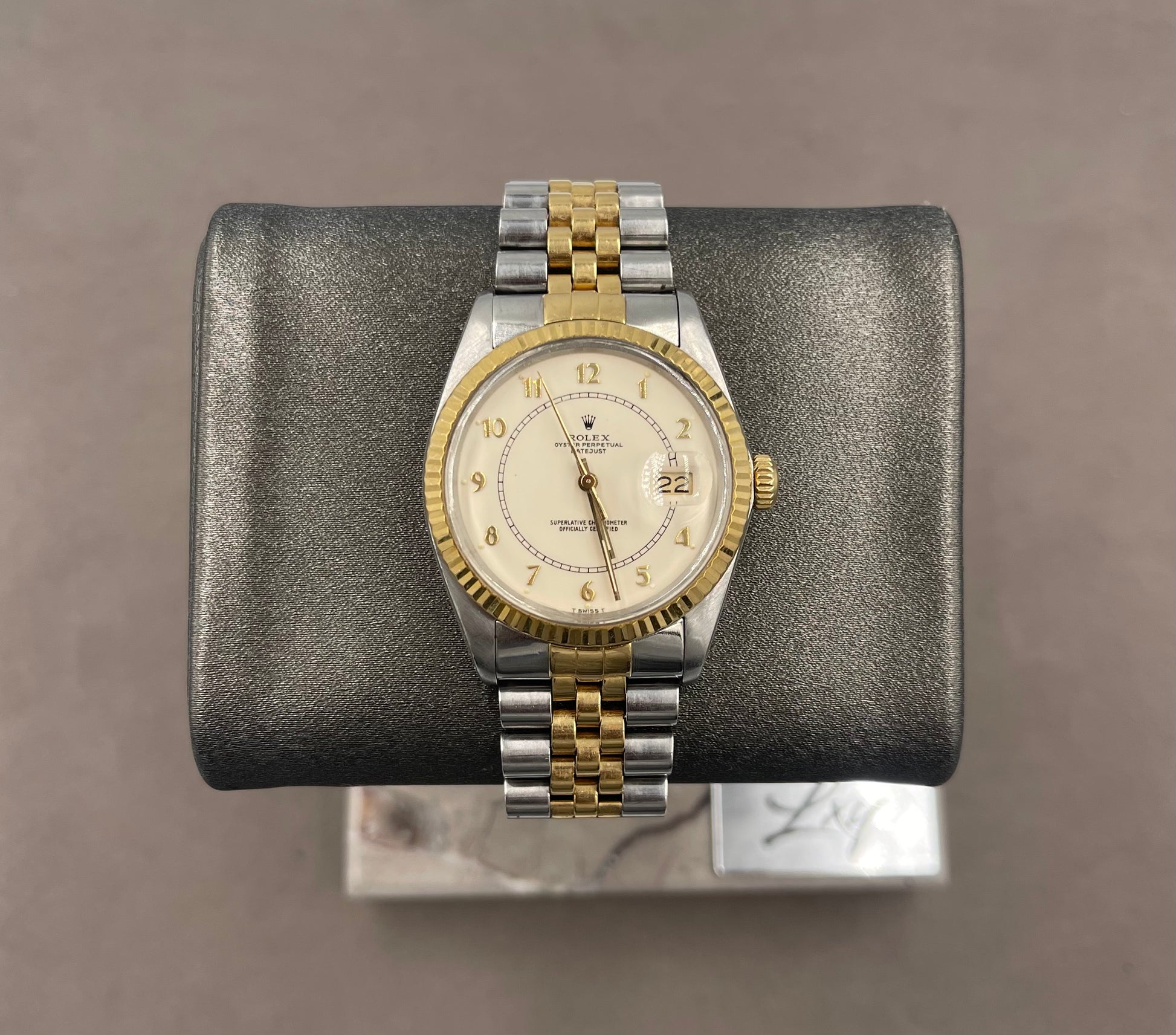 Pre-owned Rolex Men's Datejust 36mm ref.16013 Ivory Arabic Dial Fluted Bezel on Jubilee w/Box & Papers