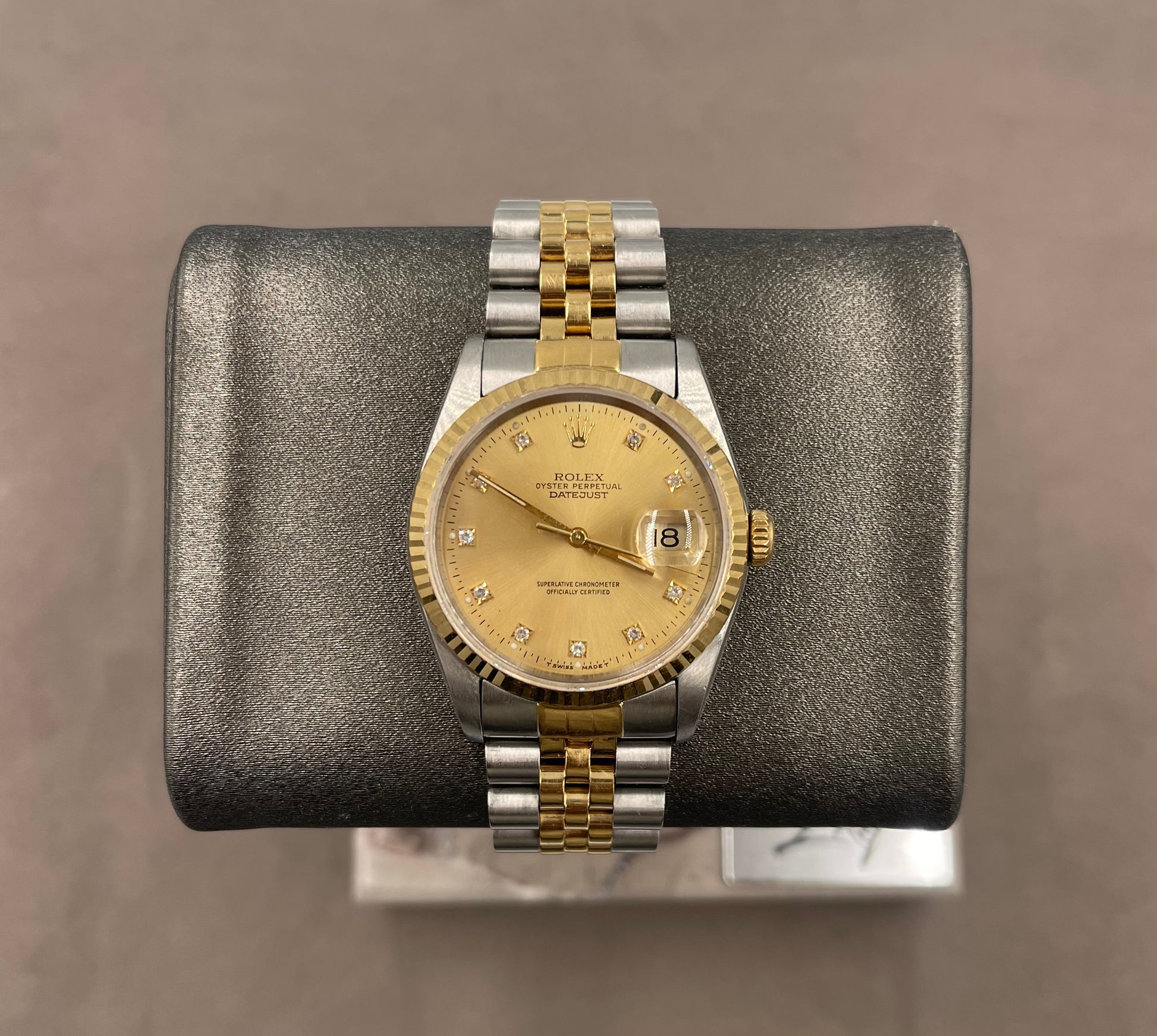 Pre-owned Rolex Men's Datejust 36mm ref.16233 Champagne Diamond Dial Fluted Bezel on Jubilee w/Box, S Serial