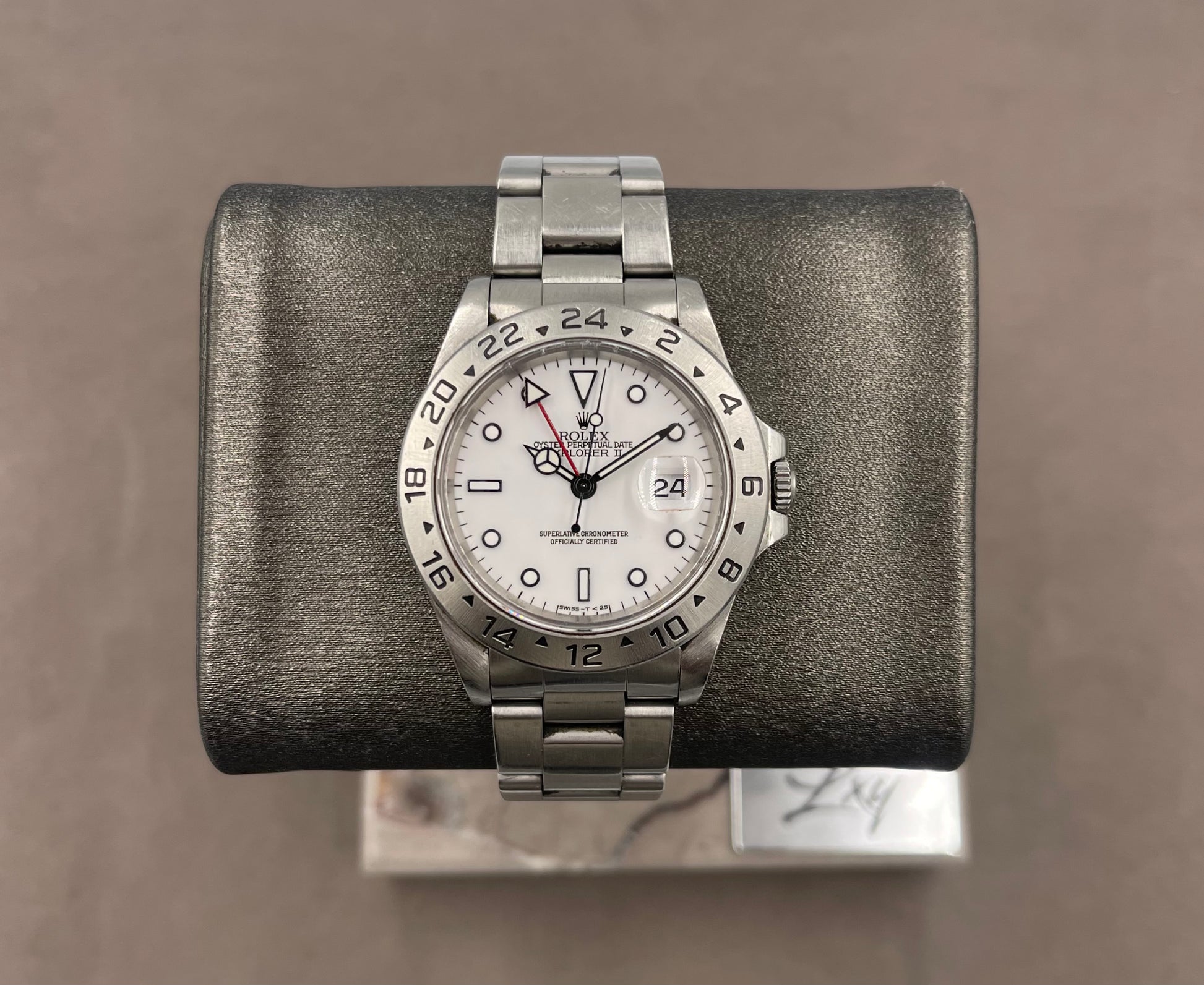 Pre-owned Rolex Men's Explorer II 40mm ref.16570 White Dial Steel Bezel on Oyster w/Box, T Serial