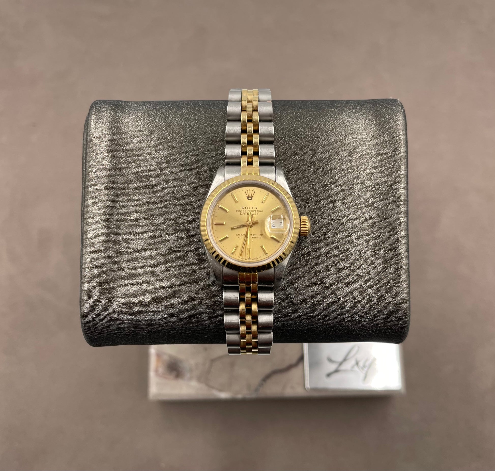 Pre-owned Rolex Ladies-Datejust 26mm ref.69173 Champagne Index Dial Fluted Bezel on Jubilee w/Box & Papers, R SERIAL 1988