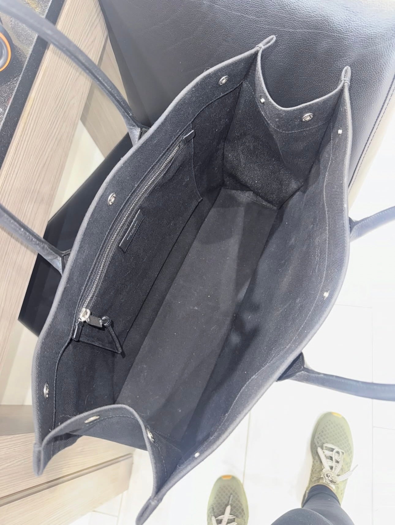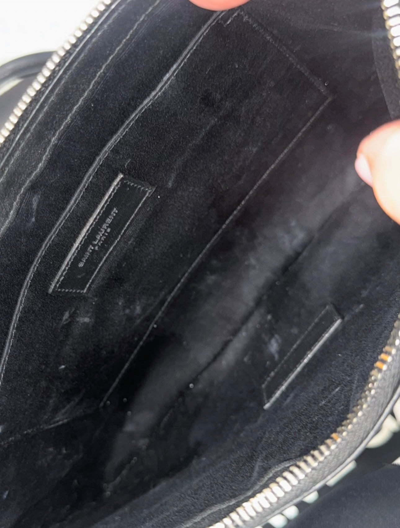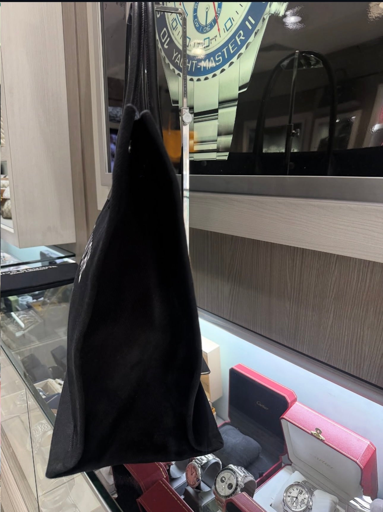 This Saint Laurent Rive Gauche Tote and Pouch Set offers timeless Parisian style and versatility. Crafted from durable black canvas with leather trim, both pieces feature the signature “Rive Gauche Saint Laurent” logo for a bold, modern finish.