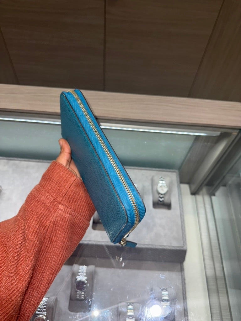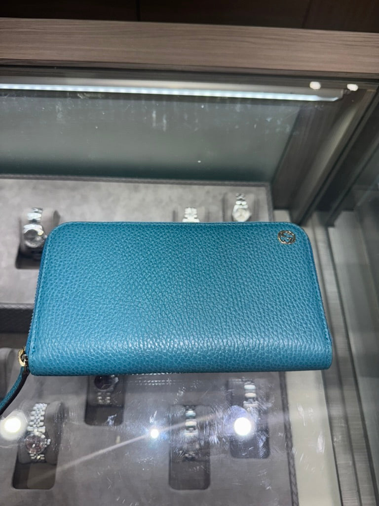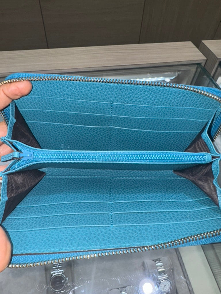 Pre-owned Gucci Teal Long Wallet pebbled leather Style: 449347