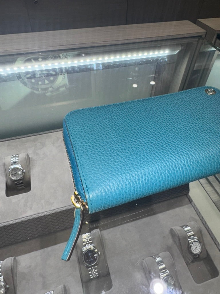 - Hardware: Elegant gold-tone hardware, complementing the rich teal leather and adding a touch of sophistication.