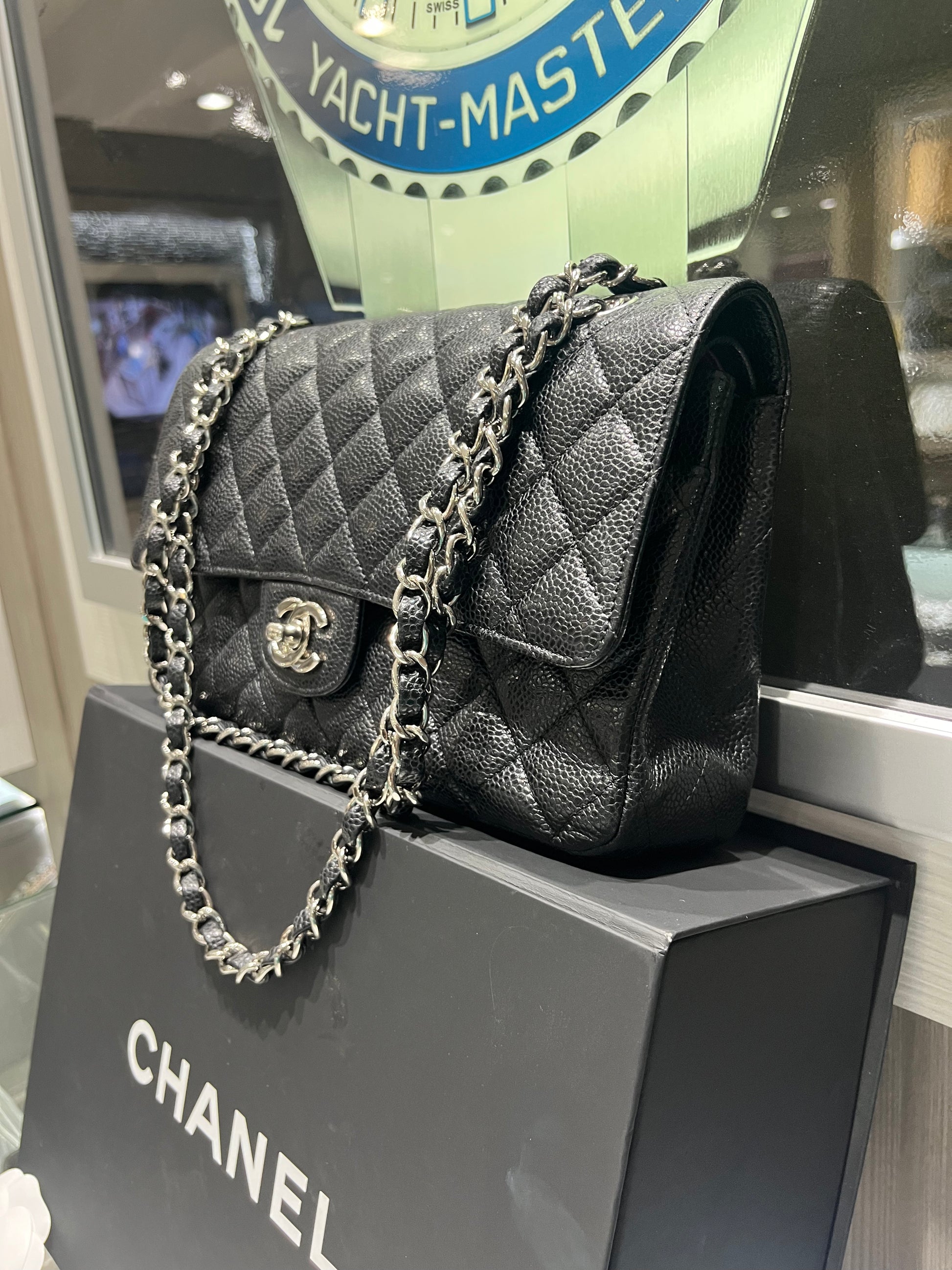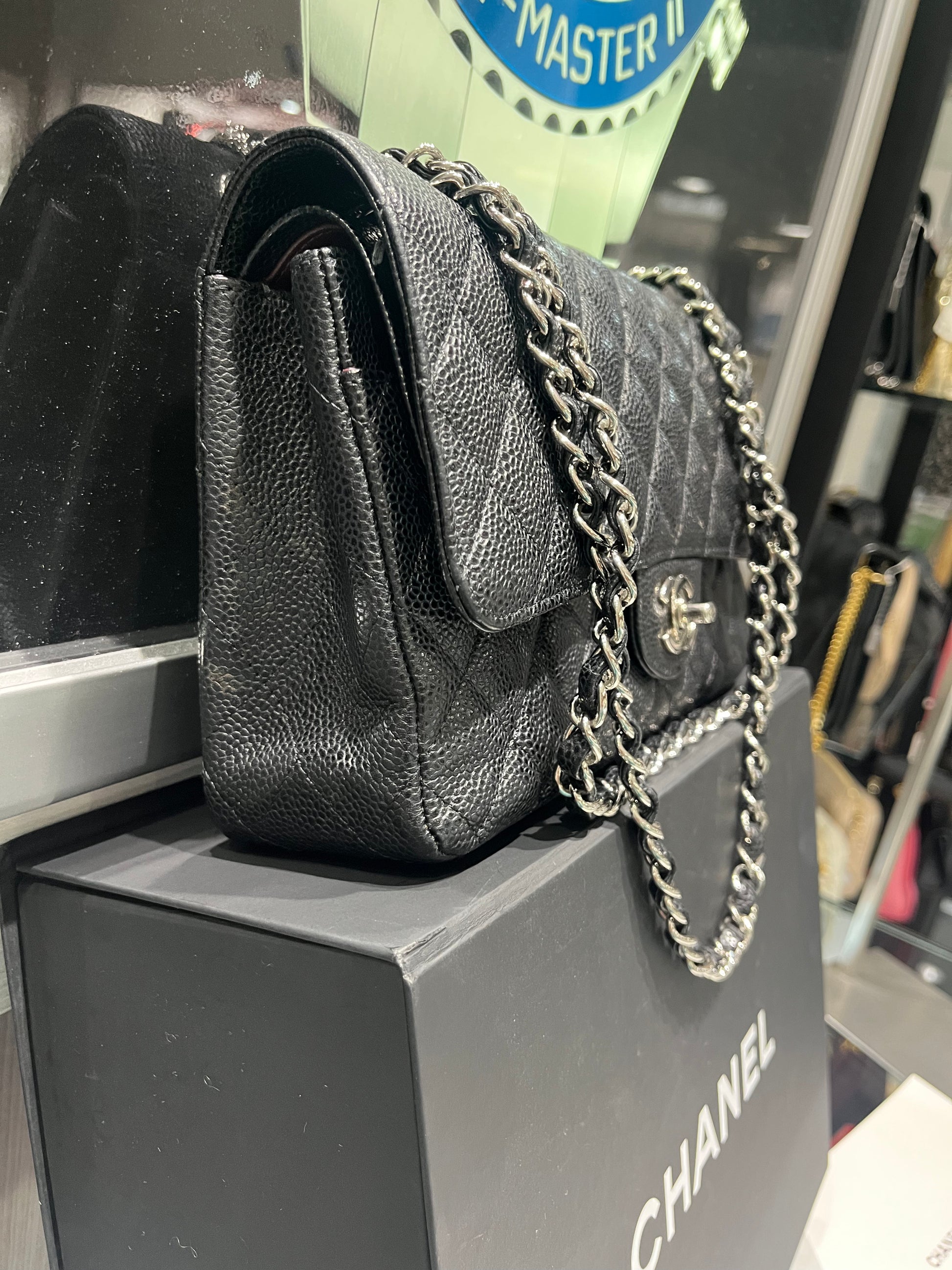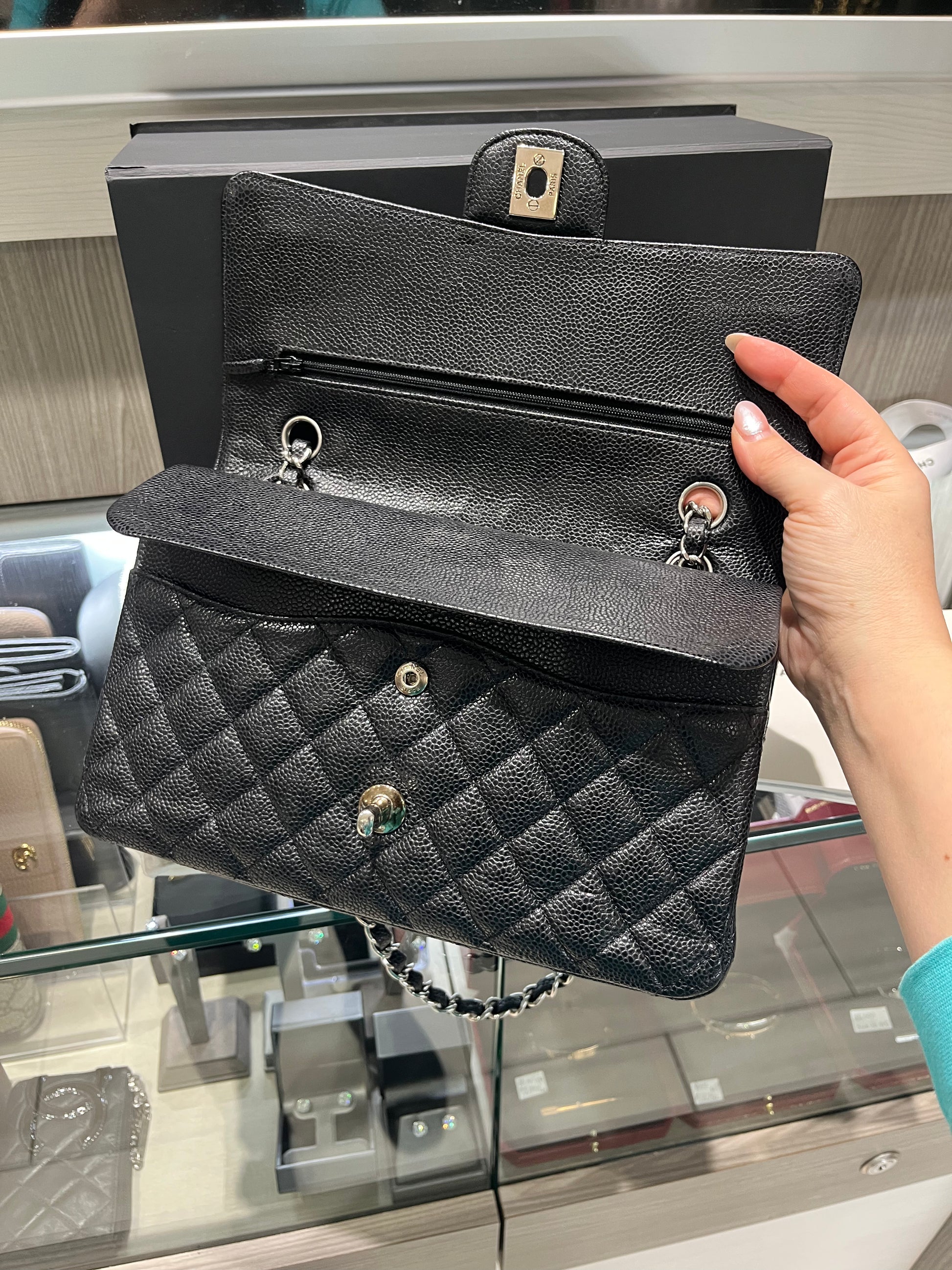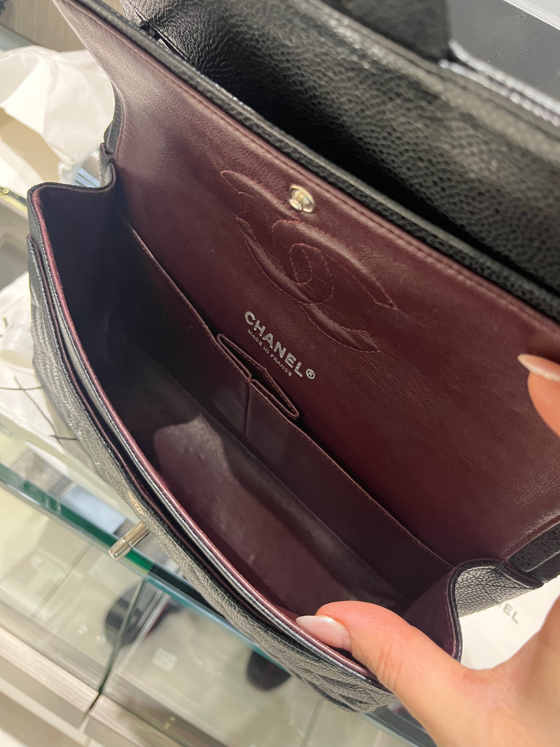 Pre-owned Chanel Black Medium Classic Double Flap Caviar SHW (2011 Production)
