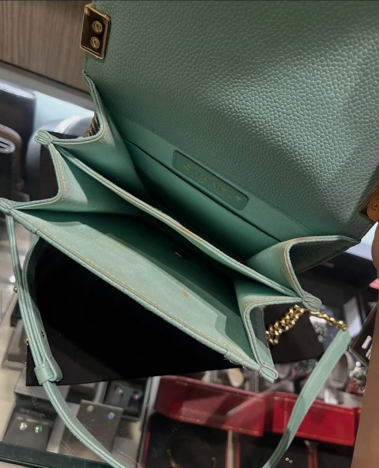 - Hardware: Gold-tone hardware, including the iconic CC Boy push-lock closure.