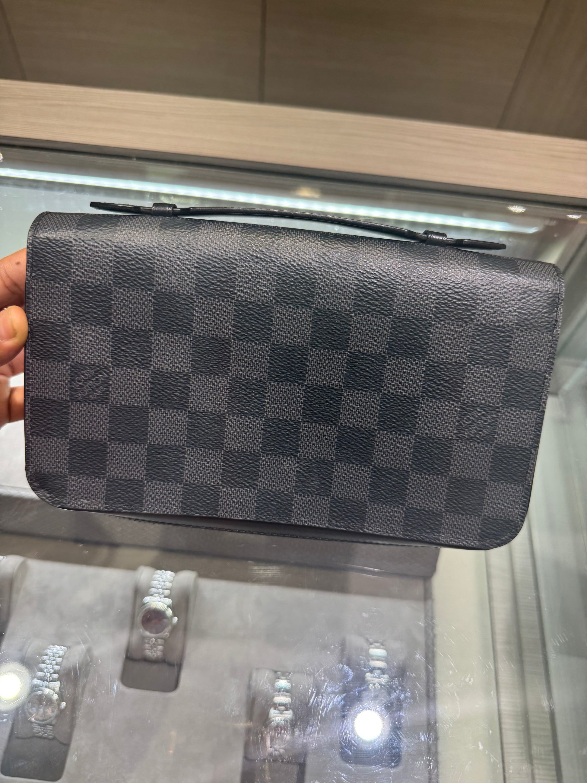 - Exterior: Damier Graphite coated canvas.