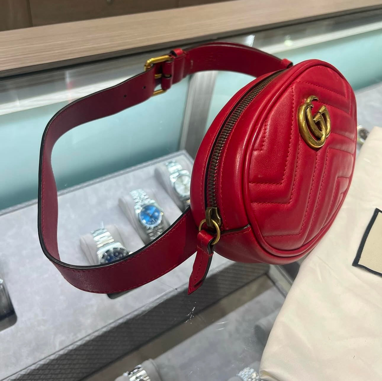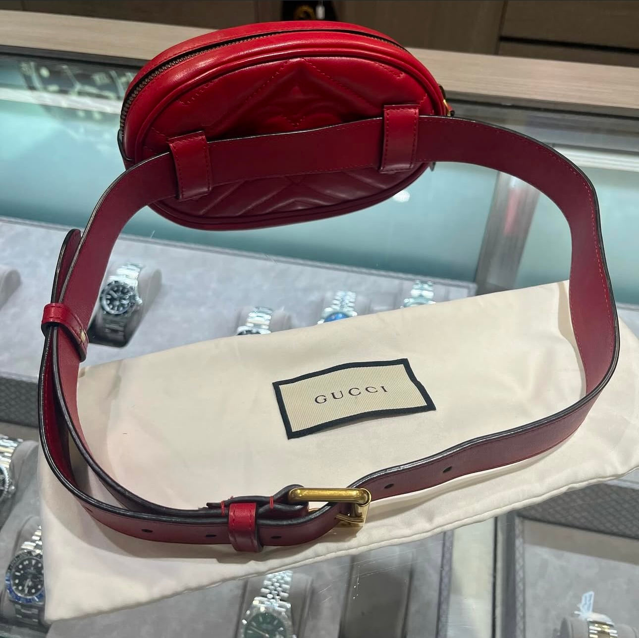 Pre-owned Gucci Marmont Matelasse Red Leather Belt Bag size 85 Style: 476434