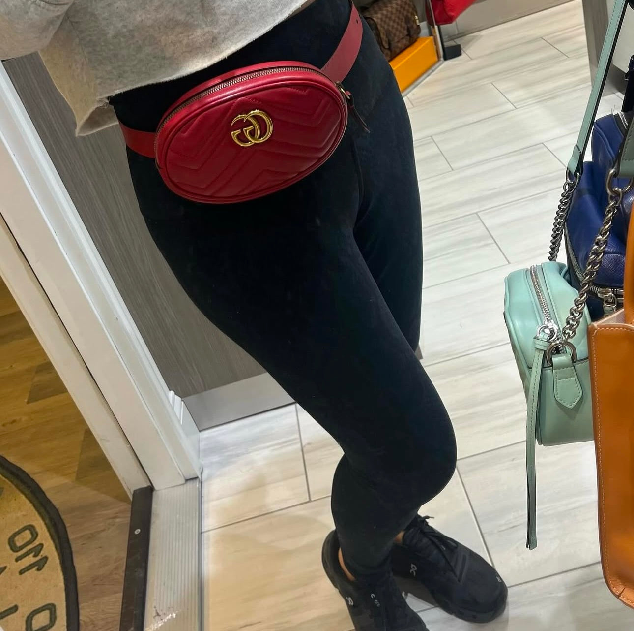 - Design:Iconic gold-tone GG logo for timeless elegance.Single zip closure opens to a spacious, Alcantara-lined interior with a flat pocket for organization.Adjustable waist belt, allowing you to style it as a belt bag or crossbody for a sporty, on-trend look.