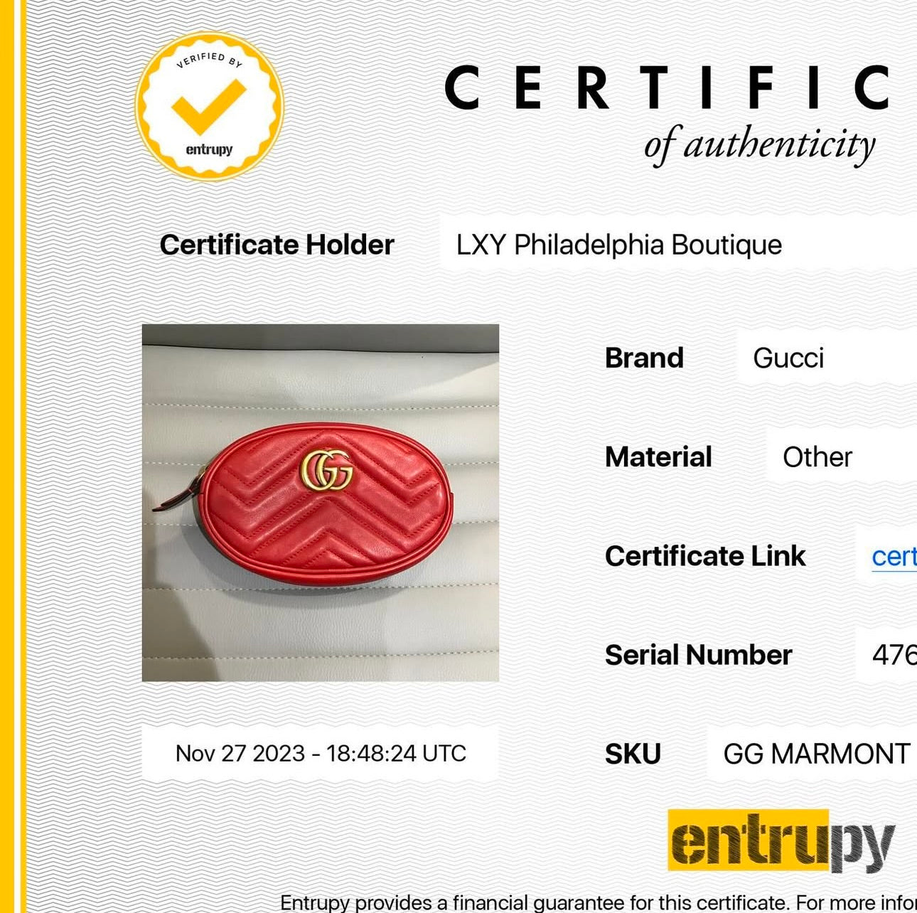 Add a bold and versatile accessory to your collection with this Gucci Marmont Matelassé Belt Bag, designed in vibrant red quilted leather with the signature GG logo on the front. In excellent condition, it shows minimal signs of prior use and comes with a letter of authenticity from Entrupy and its original dust bag.
