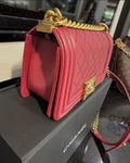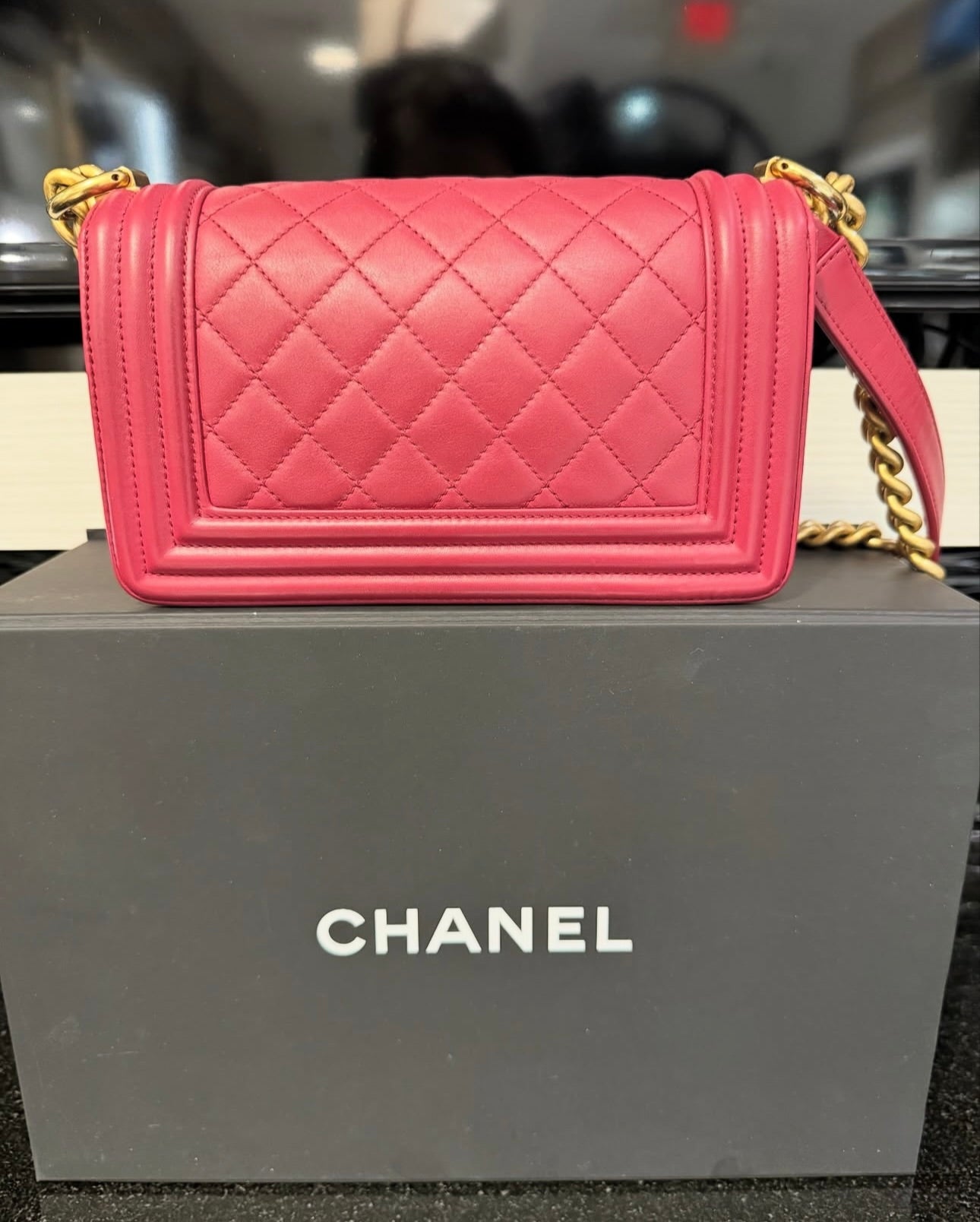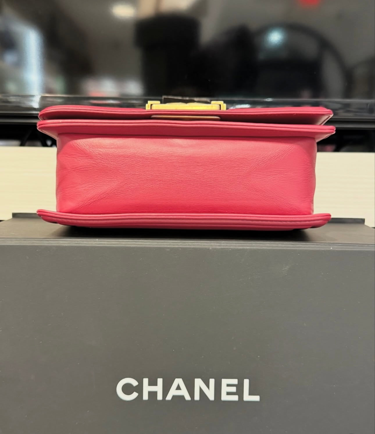 Pre-owned Chanel Small Boy Flap Bag Dark Pink Quilted Lambskin with Antique Gold Hardware (2018–2019)