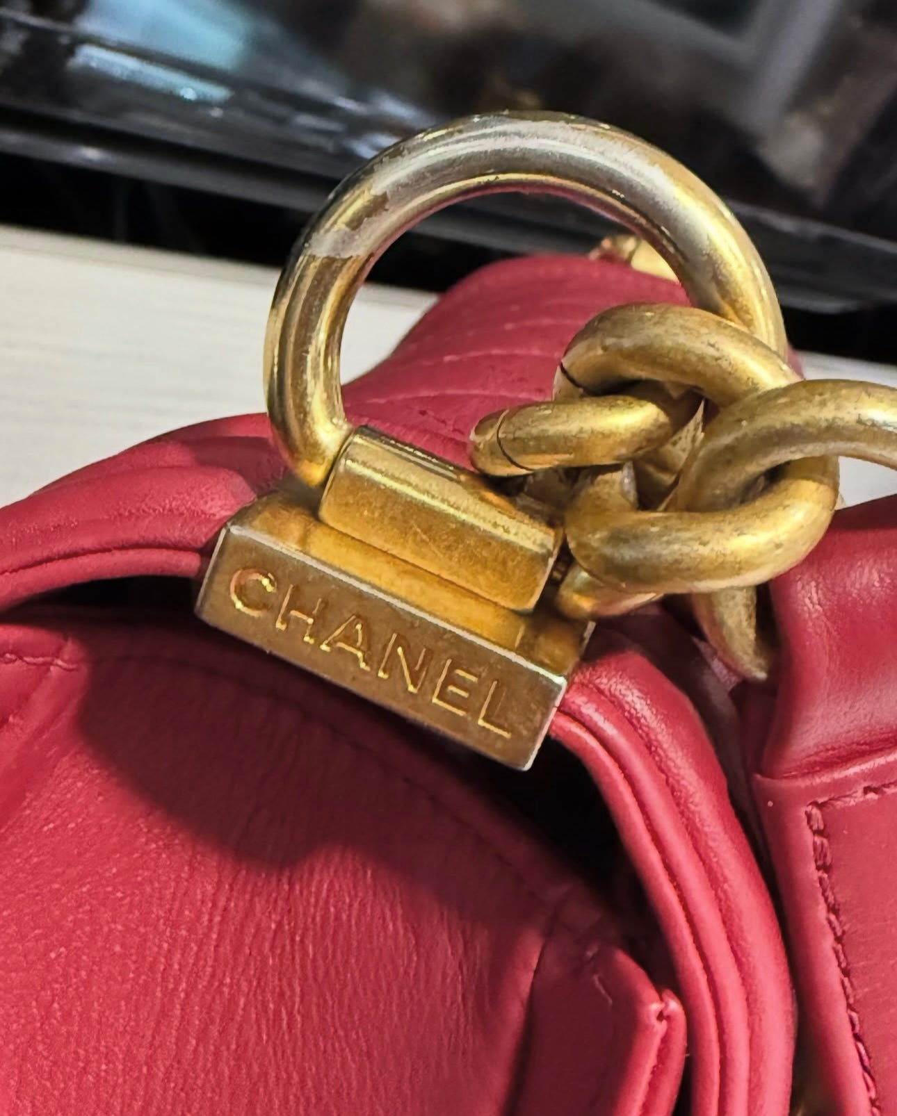 Chic antique gold-tone hardware with signature Boy push-lock closure