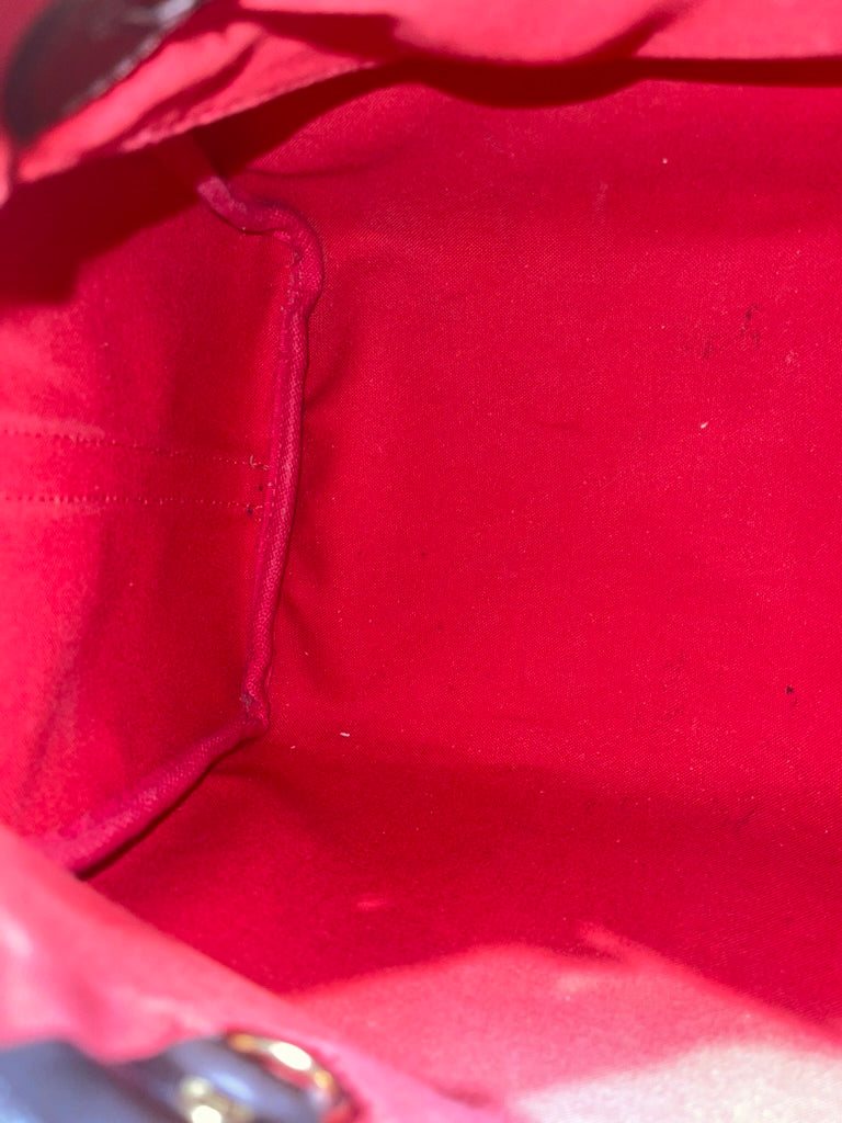 Condition: Very good pre-owned condition. The bag shows visible signs of prior use, including scuffing on the leather and leather trim, fading and scratches on the hardware, pen marks on the interior lining, and a slight odor. The canvas remains intact and the bag maintains good structure overall.