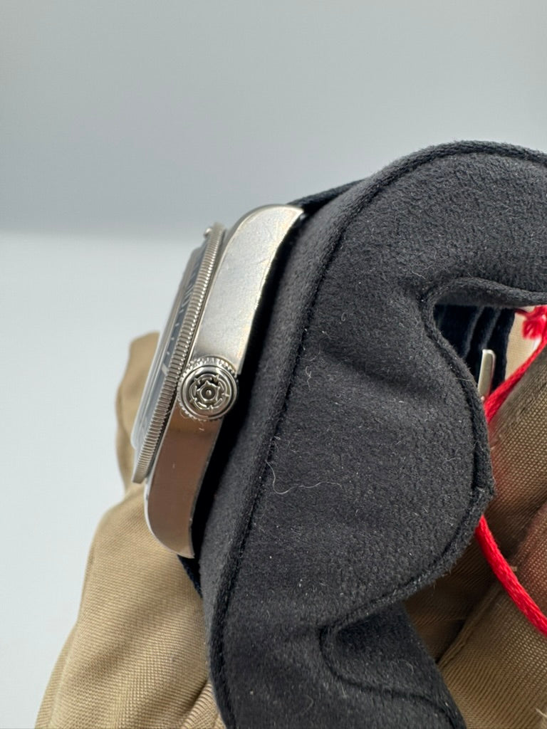 | BEZEL | Unidirectional rotatable bezel in steel with 60-minute graduated disc in matt blue anodised aluminium and silver gilded markings and numerals |