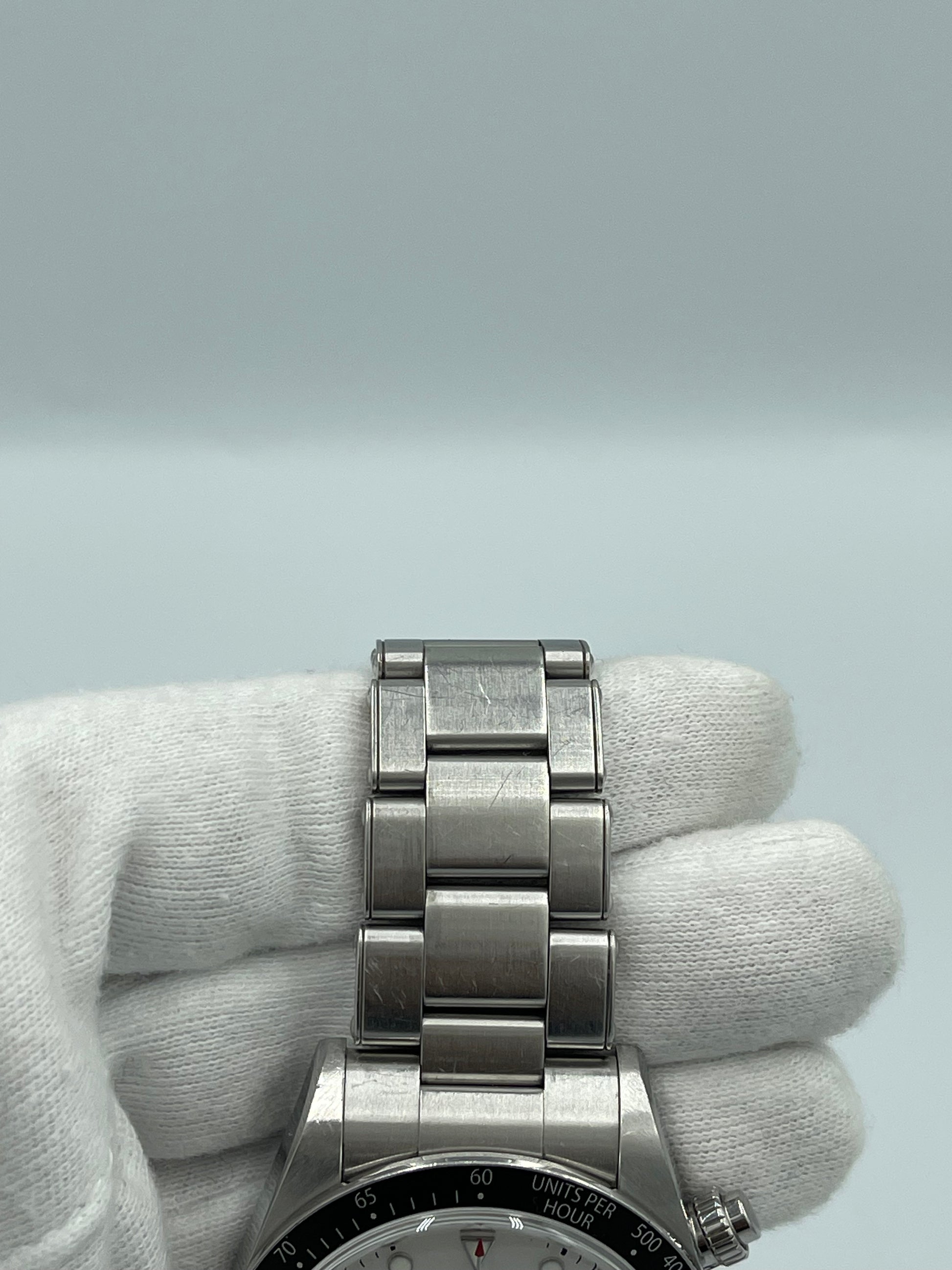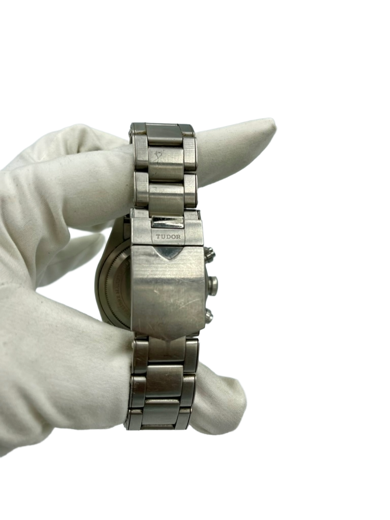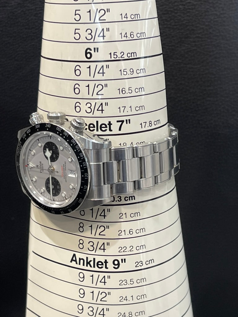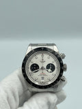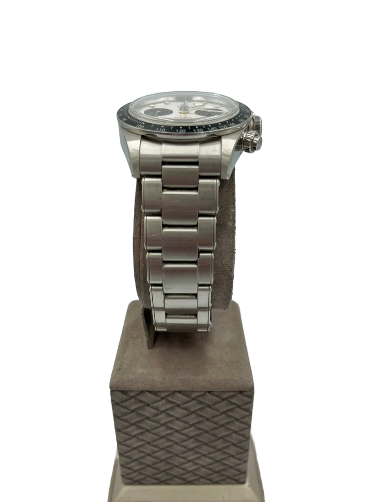 This authentic Tudor Black Bay Chrono Panda Ref. 79360 seamlessly merges the heritage of Tudor’s diving roots with the spirit of motorsport-inspired chronographs. Crafted in stainless steel, this bold and versatile timepiece features a 41mm case, a striking white dial with black sub-dials, and a fixed black aluminum tachymeter bezel, giving it an iconic and sporty presence on the wrist.