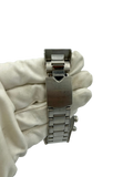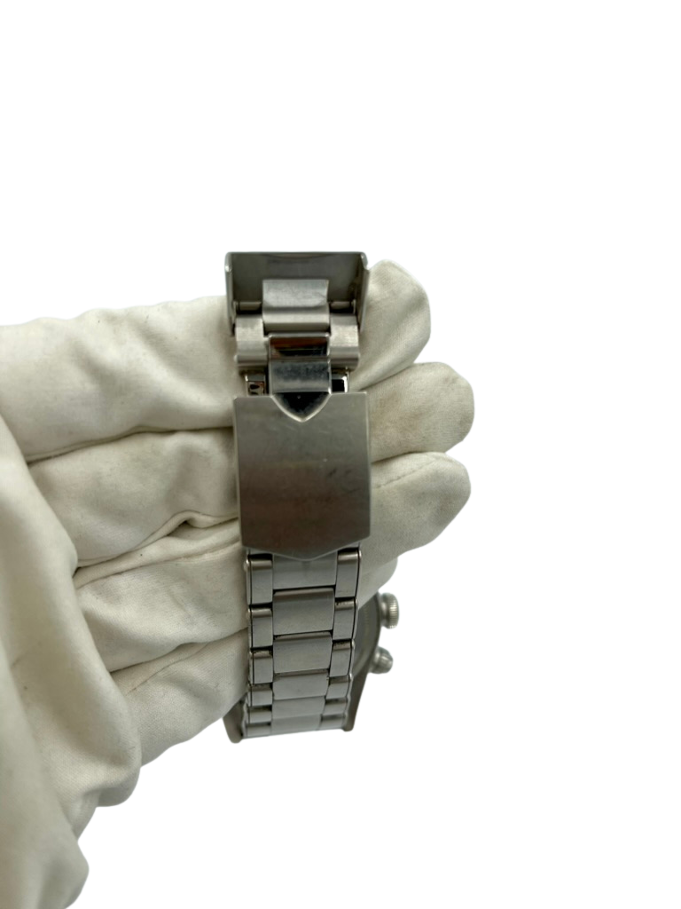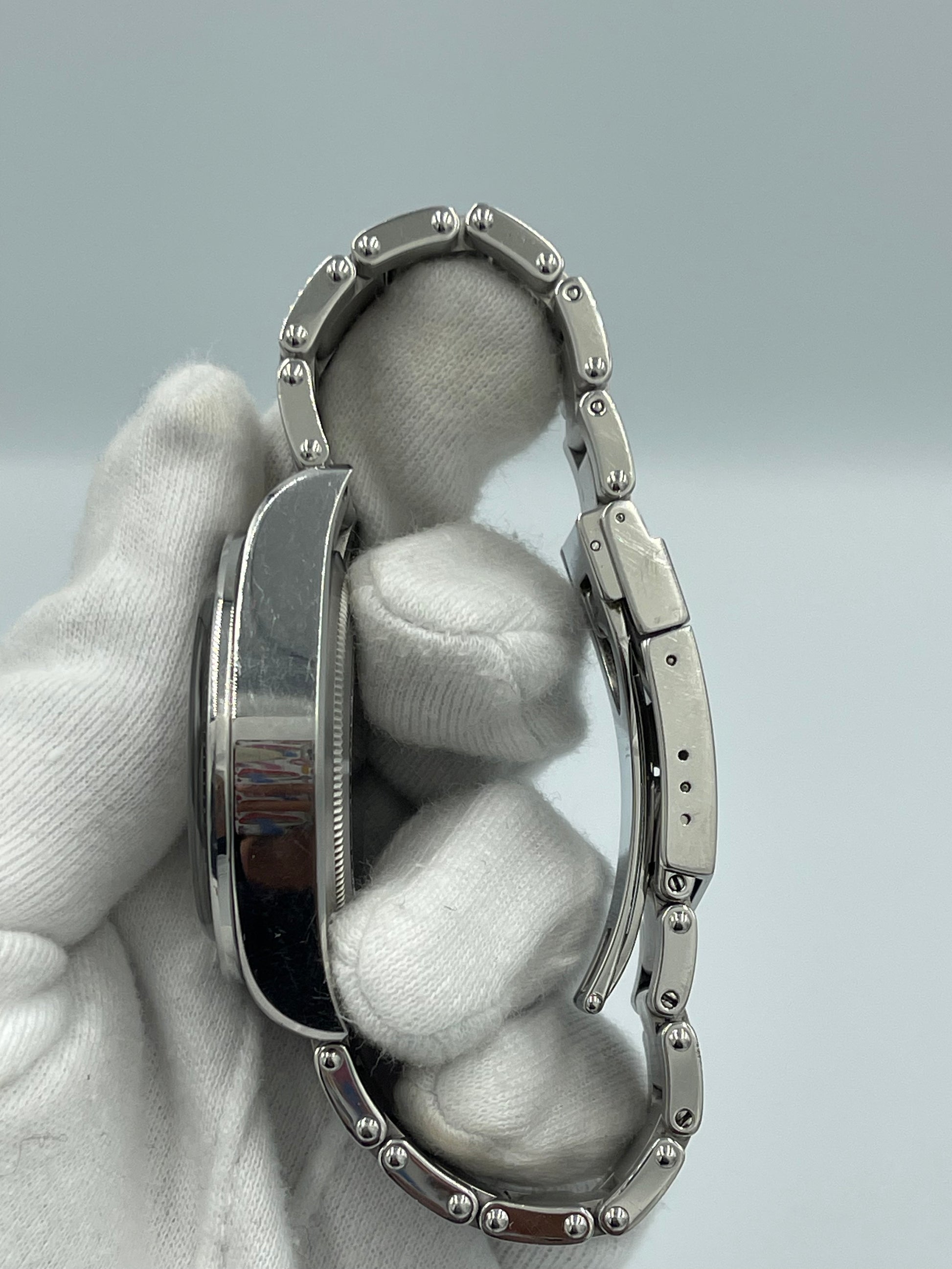 Powered by a self-winding automatic movement, the watch is water-resistant up to 200 meters (20 ATM) and protected by a sapphire crystal for durability and clarity. The luminous hands and markers ensure legibility in all conditions, while the folding clasp on the stainless steel bracelet provides a secure and comfortable fit.