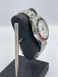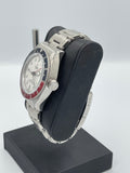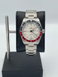 This unworn Tudor Black Bay GMT with the sought-after white opaline dial and iconic burgundy and blue “Pepsi” bezel is a striking blend of vintage inspiration and modern watchmaking. A true tool watch with refined finishing, it’s designed for both everyday wear and serious travel functionality.