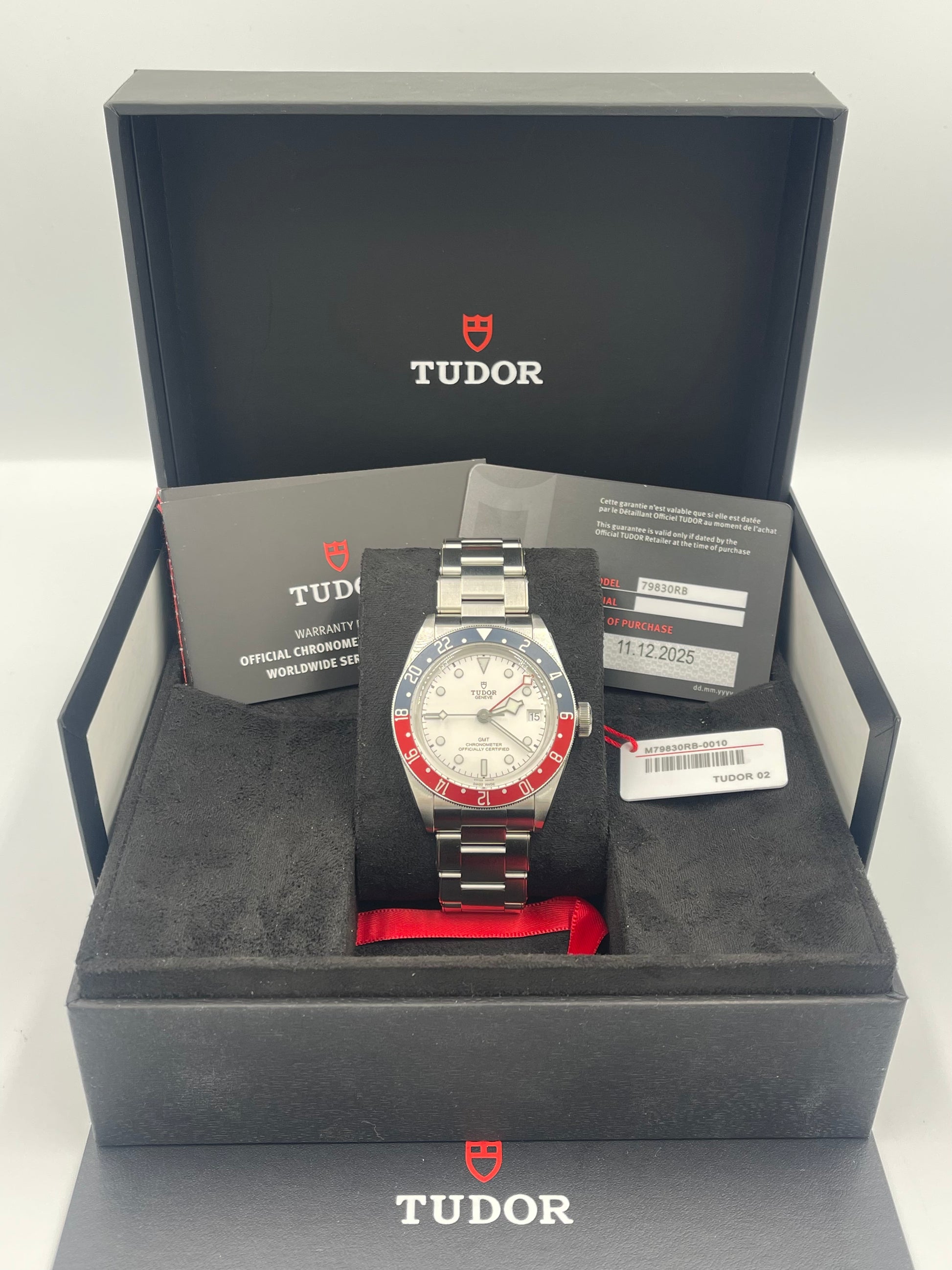Unworn Tudor Black Bay GMT White Dial (PEPSI) ref. m79830rb-0010 W/CARD DATED 12-11-2025