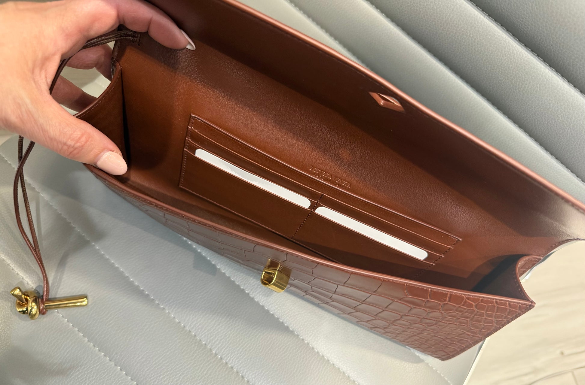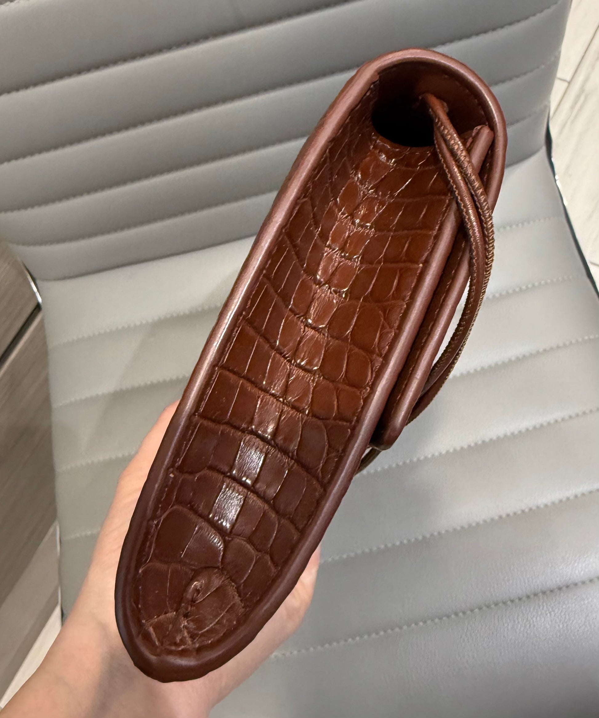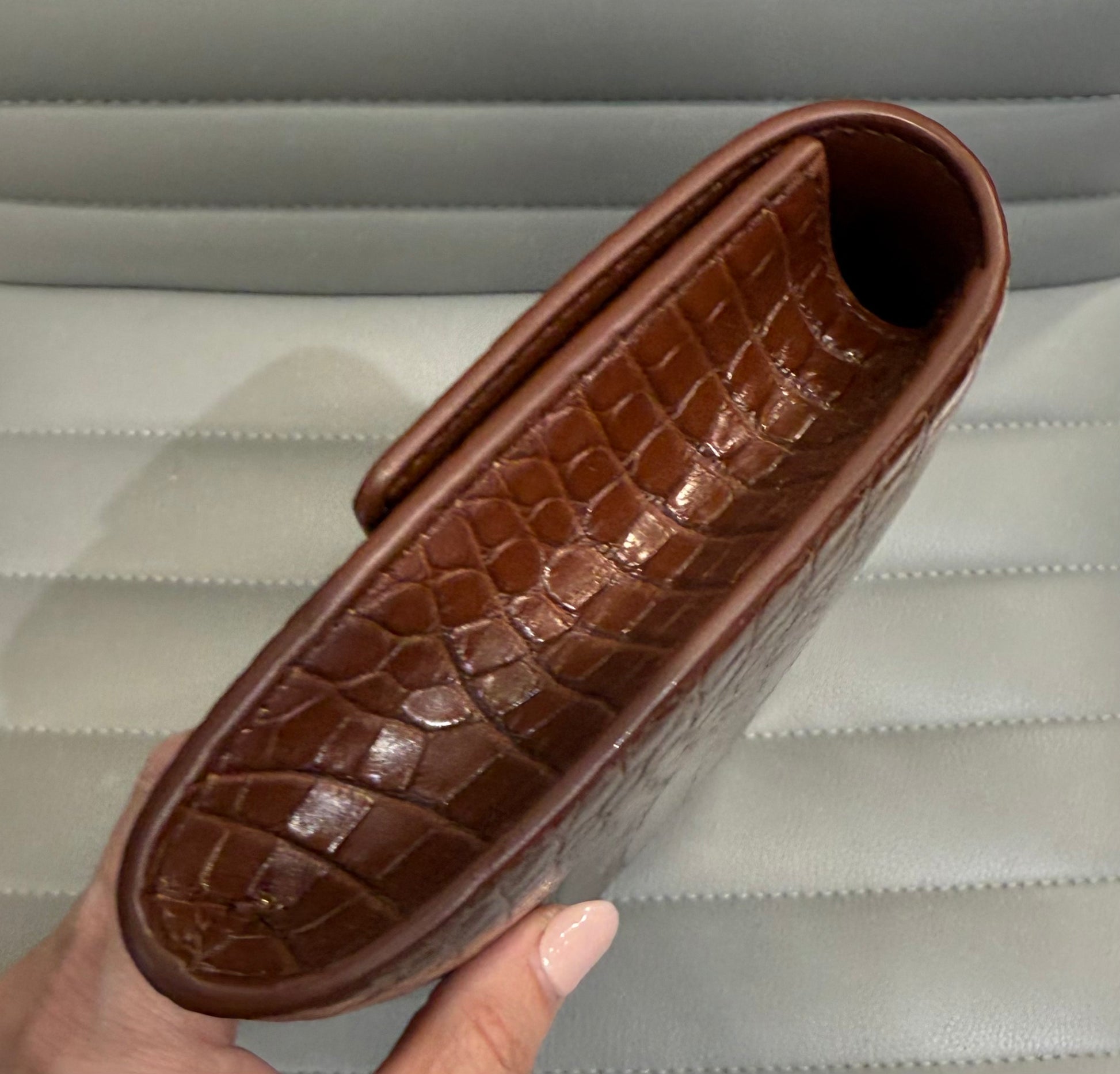Unworn Bottega Veneta Andiamo Alligator Clutch Brown GHW R004918964