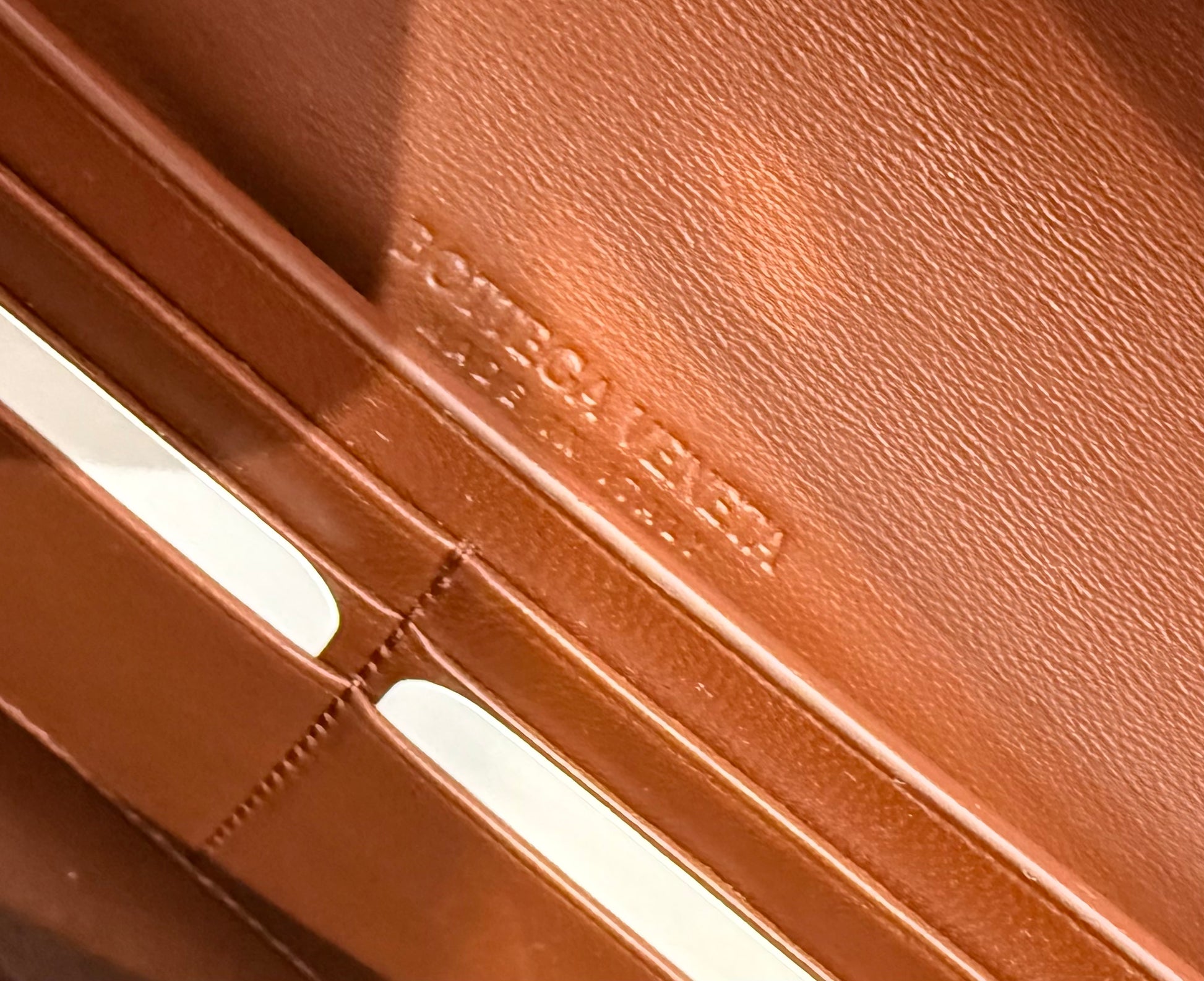 A refined statement of luxury and versatility, this unworn Bottega Veneta "Andiamo" Long Clutch is exquisitely crafted from genuine brown alligator leather and finished with the House’s iconic gold-tone knot toggle closure. Sleek yet structured, the piece can be carried by its top handle or styled as a sophisticated clutch.