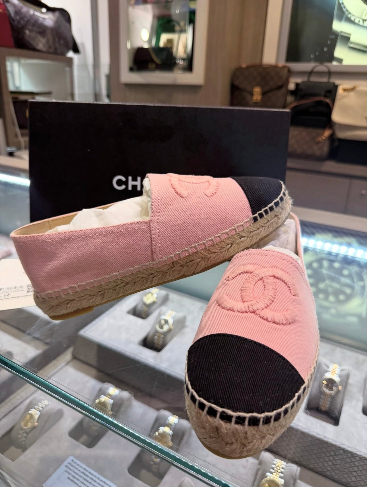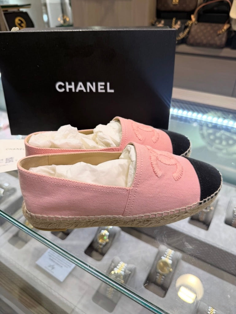While these are unworn, it's worth noting from Chanel shoe collectors that sizing can feel tight at first—especially in espadrilles. If you're between sizes or have wider feet, consider going up half a size. The fit improves after a few wears, or you can use a shoe stretcher for quicker comfort.