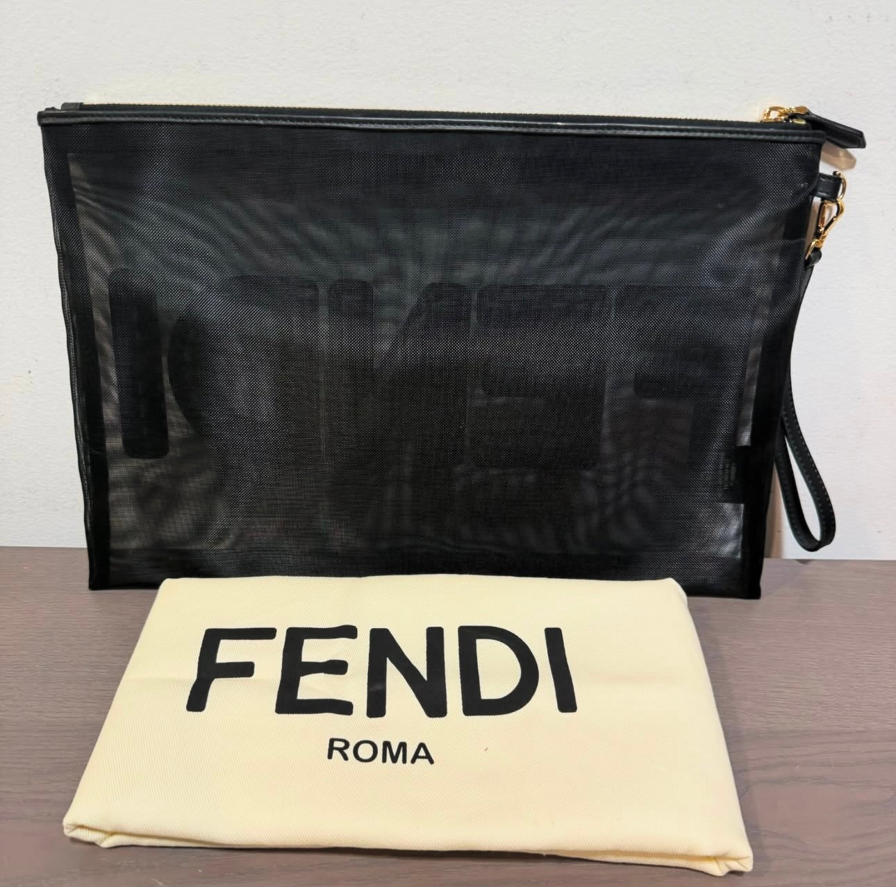 Unworn Fendi Mesh Pouch Black Leather w/duster
