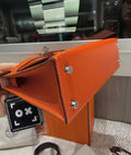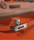 Unworn Hermes Mini Kelly 20 Verso Feu Orange and Rose Eglantine Pink Chevre Mysore (Goatskin) Palladium Y stamp (2020)